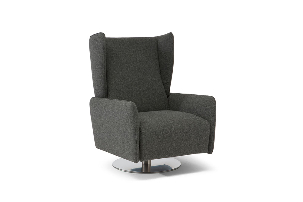 Compact swivel armchair with a simple design and soft, rounded lines. The backrest and armrests wrap themselves around you. A redesigned bergere adds a feel of lightness.