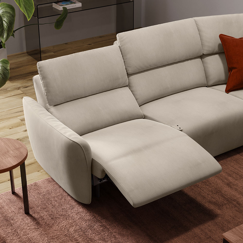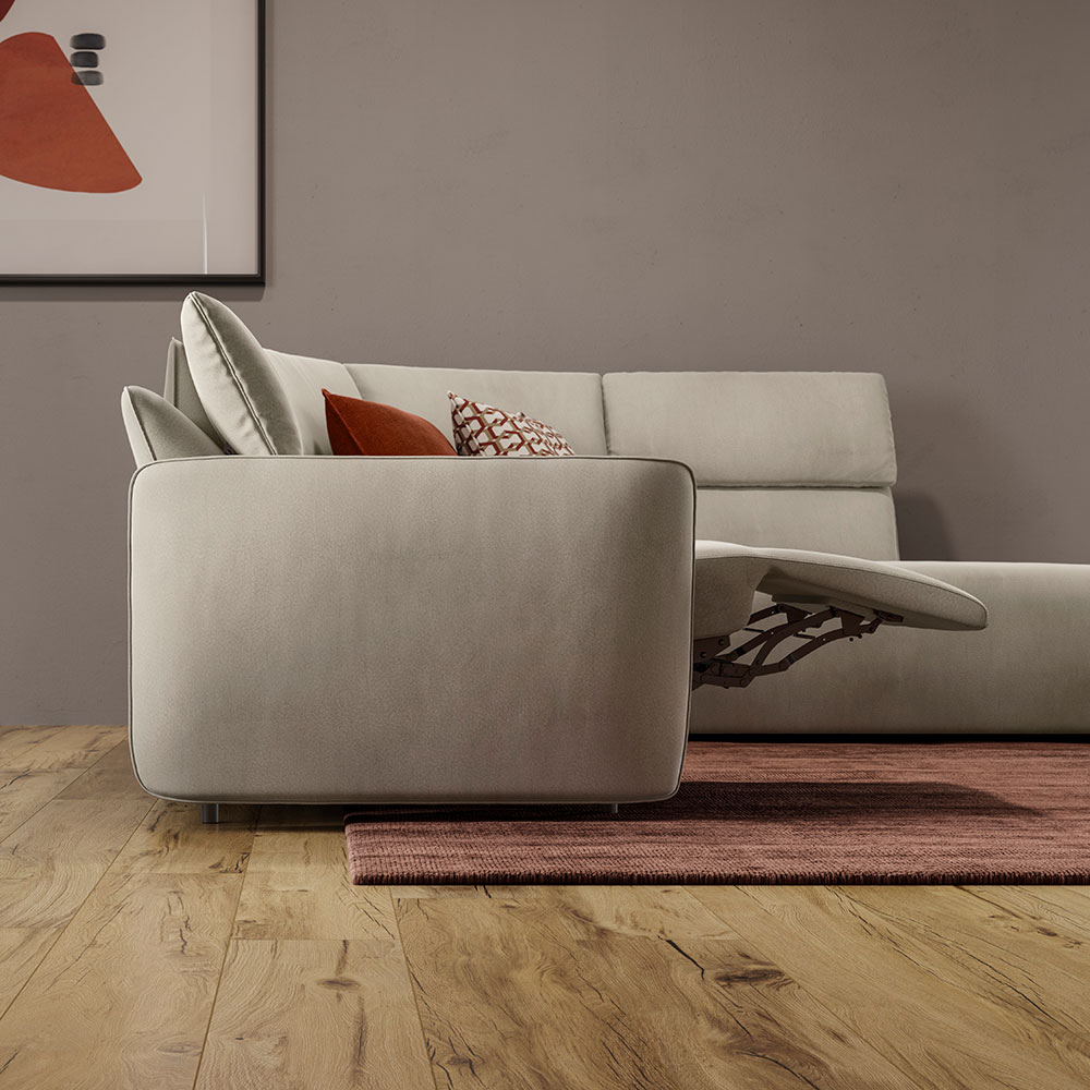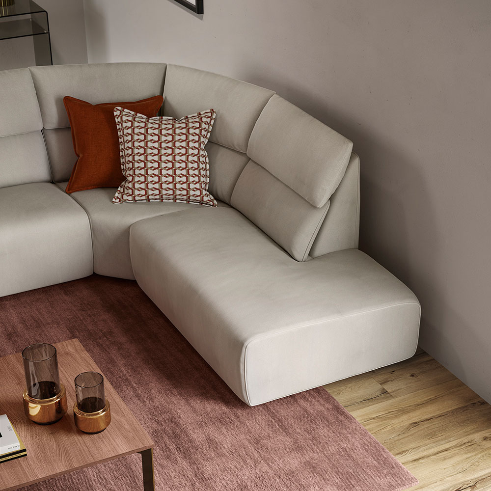 Versatile is an extremely modular and customisable seat system: with or without the relaxation function, linear or angular, on its own or combined with other modules. The end part of the sofa that can be completed by choosing the armrest or, alternatively, a side panel, even with a different covering to the seats, easily adapting to any space and style.