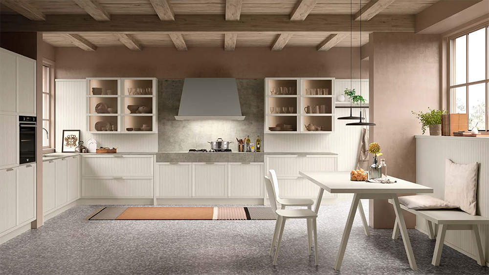 Stosa Tosca kitchens. Beadboard doors bring a traditional feel to the refined, linear style of Tosca kitchens.
