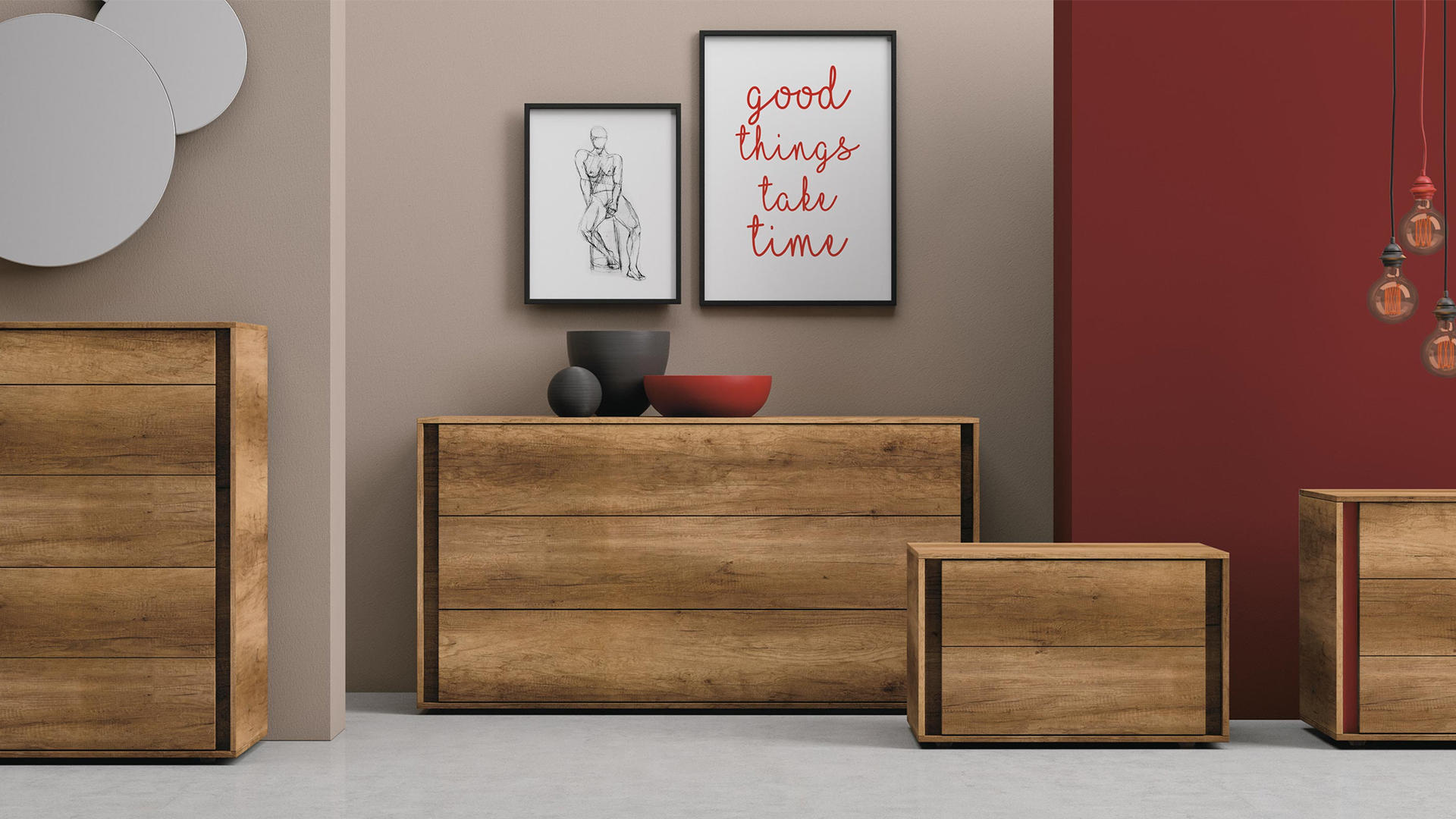 Furnishing the bedroom with storage units in simple lines, traditional materials and the latest colours.