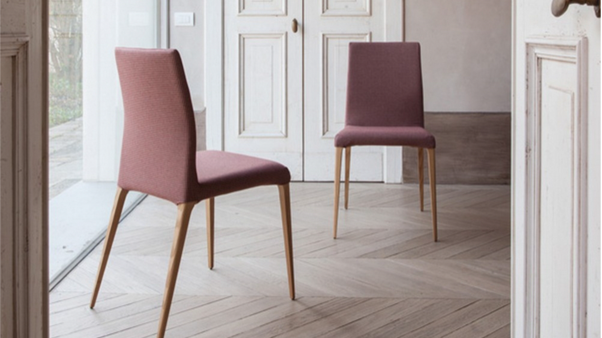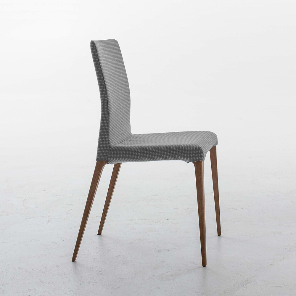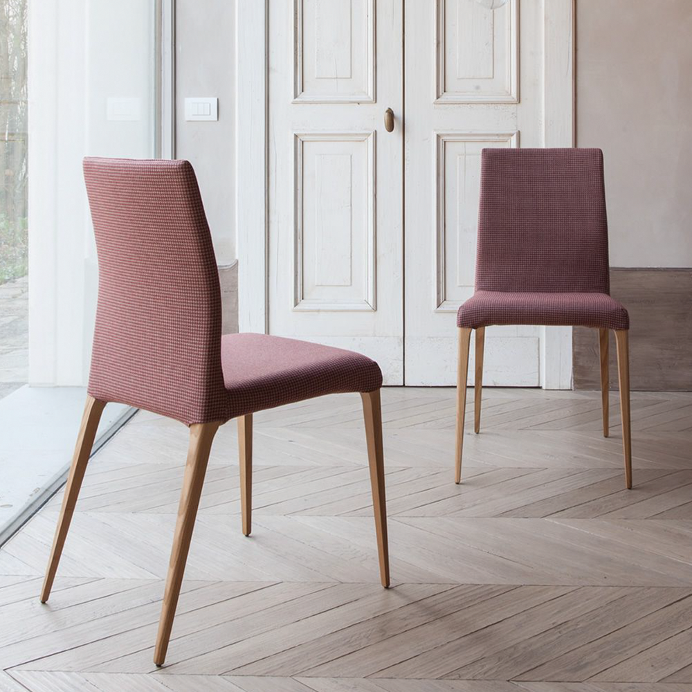 A chair with an ash wood-finished Canaletto walnut, heat-treated dark oak, or natural oak structure. The different upholsteries – leather, grain leather, Nubuk leather, eco-leather and different fabrics – allow you to sit this chair next to very different tables, for a contemporary, or rather classic result.