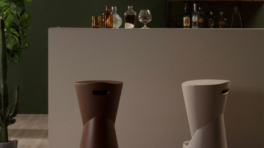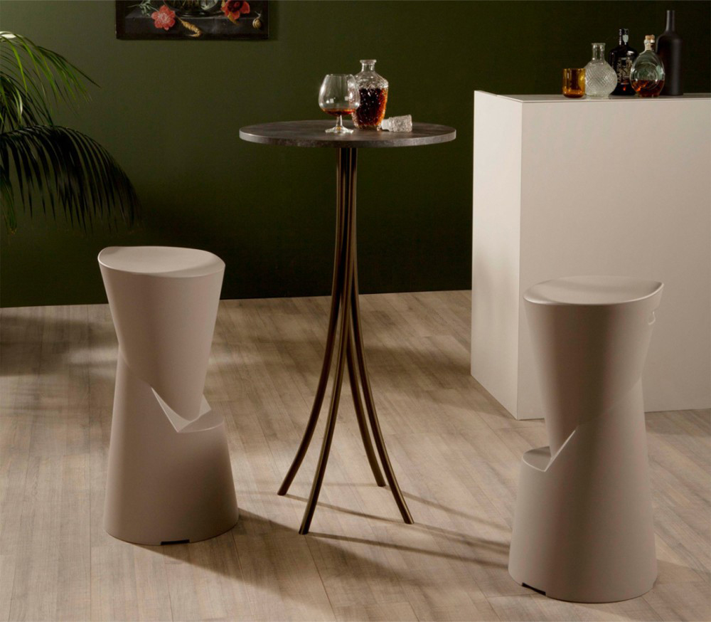 This stool’s focus is the contrast between its natural shapes – that remind those of ancient totems – and the splendor of a contemporary material, the printed polyethylene. The variety of available finishes, with colors varying from matt anthracite, to dove grey and bronze, make Batik an extremely adaptable seat.