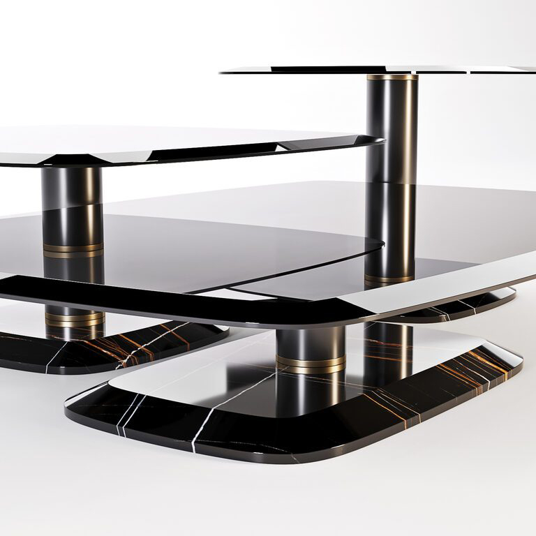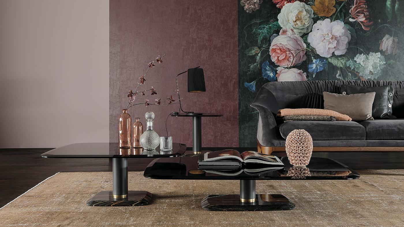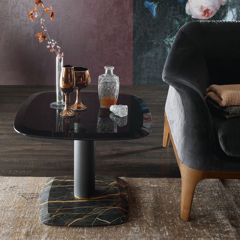 Botero is contemporary luxury, a design that finds the ideal solution for every living room in its best materials, a combination of shapes and details that make every room extremely elegant and refined. Its marble base - Marquinia, or Port Saint-Laurent - elegantly mirrors the grey glass top beveling. This table will be both a decoration and a protagonist for your living room, with a perfect Tonin Casa style.