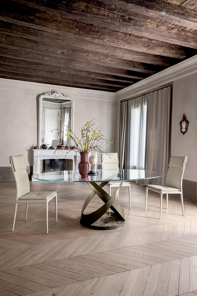 The strength of the metal structure joins the elegant marble legs and the fixed glass top, making Capri a symbol of the Italian essence. It is enriched by a discreet luxury, shining and refined, it represents care, precision and devotion.