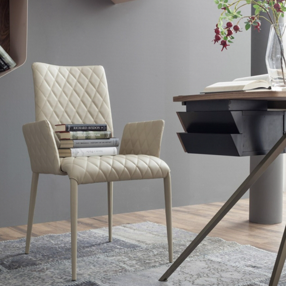 It comes with, or without armrests; it has a standard covering, and a rhombus patterns covering. The latter truly extols the backrest`s momentum.