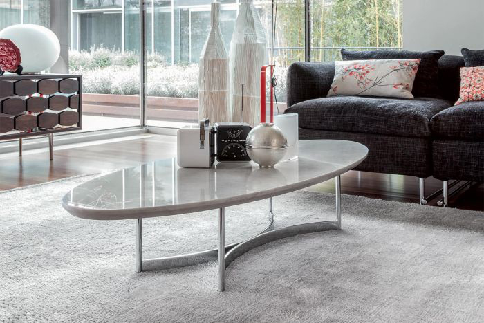 Parioli was given short, smooth sides, perfectly balanced with the chromed metal base.