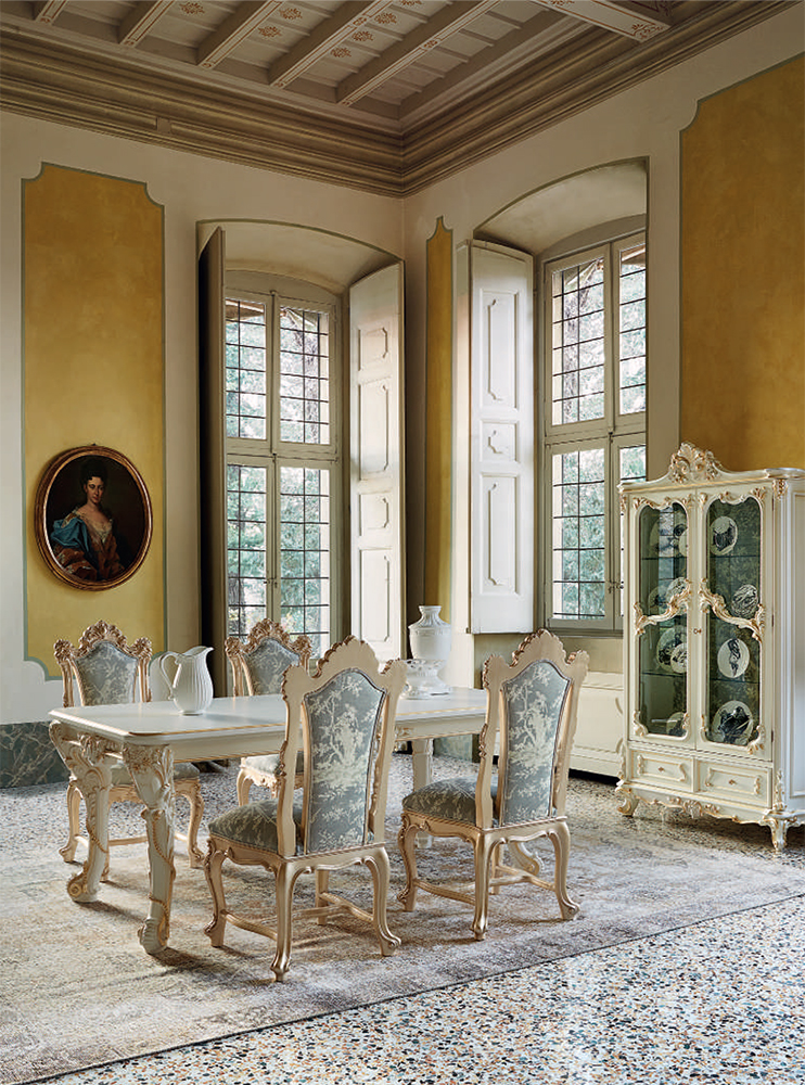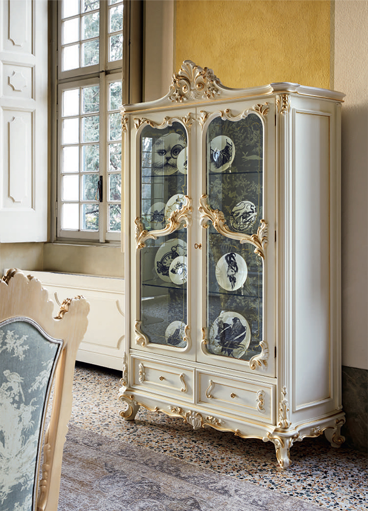 The Alexandra living room is presented in the Baroque style, it will perfectly suit the decor of respectable interiors. The luxurious decoration of the set is achieved through a carefully thought-out design, concise curly shapes, a wealth of finishing materials and masterly execution of every detail. The furniture is made of expensive wood species, covered with white water-based lacquer. Skillful carved decor, hand-painted, gilded handles - all this makes the set pompous. Filler polyurethane foam. Available in different finishes.