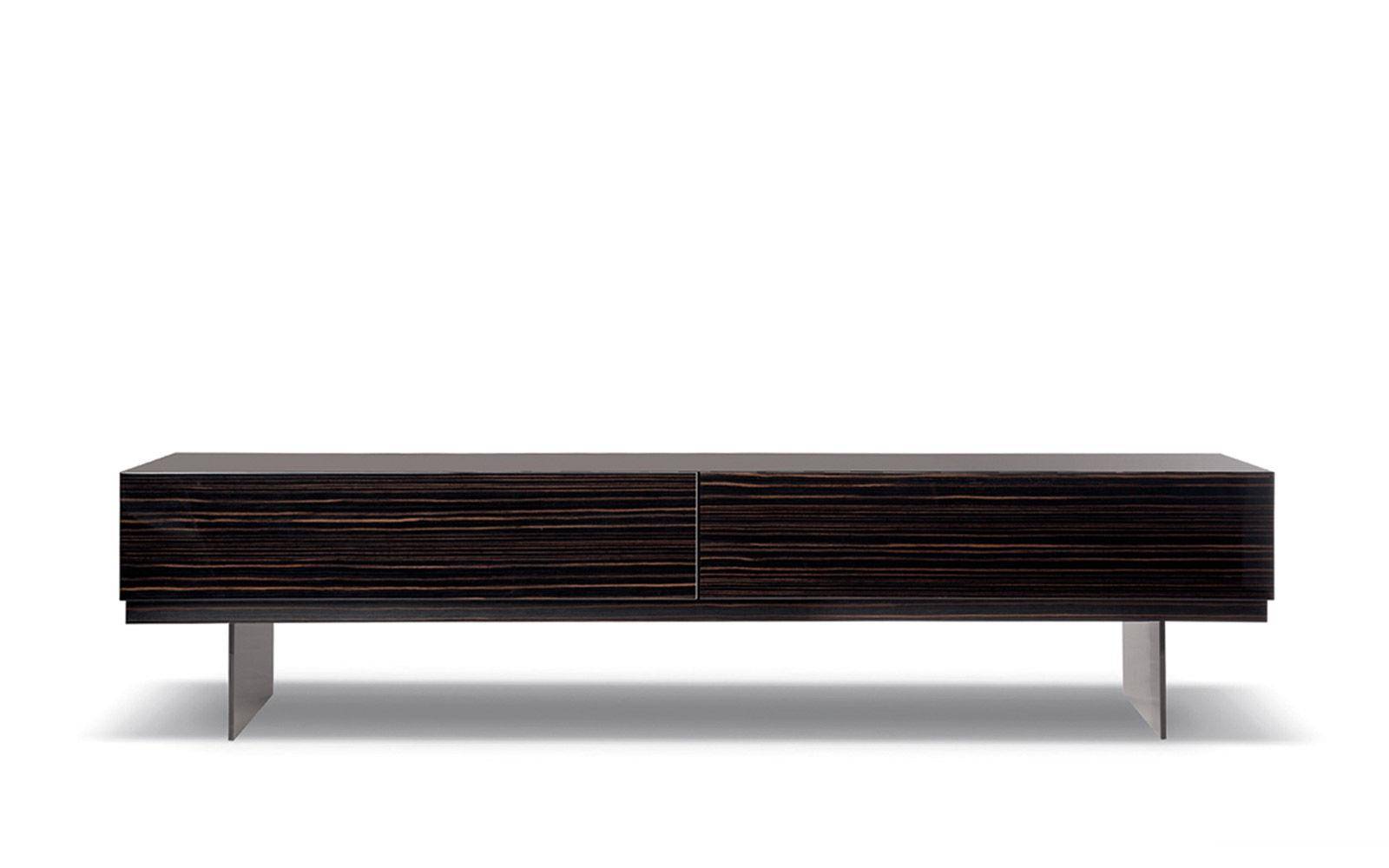 The Lang console, like the other elements in the eponymous collection, rests on sophisticatedly minimalist metal blades painted Pewter color. The base is suitably reinforced to ensure the utmost stability without compromising the inherent lightness of the project.