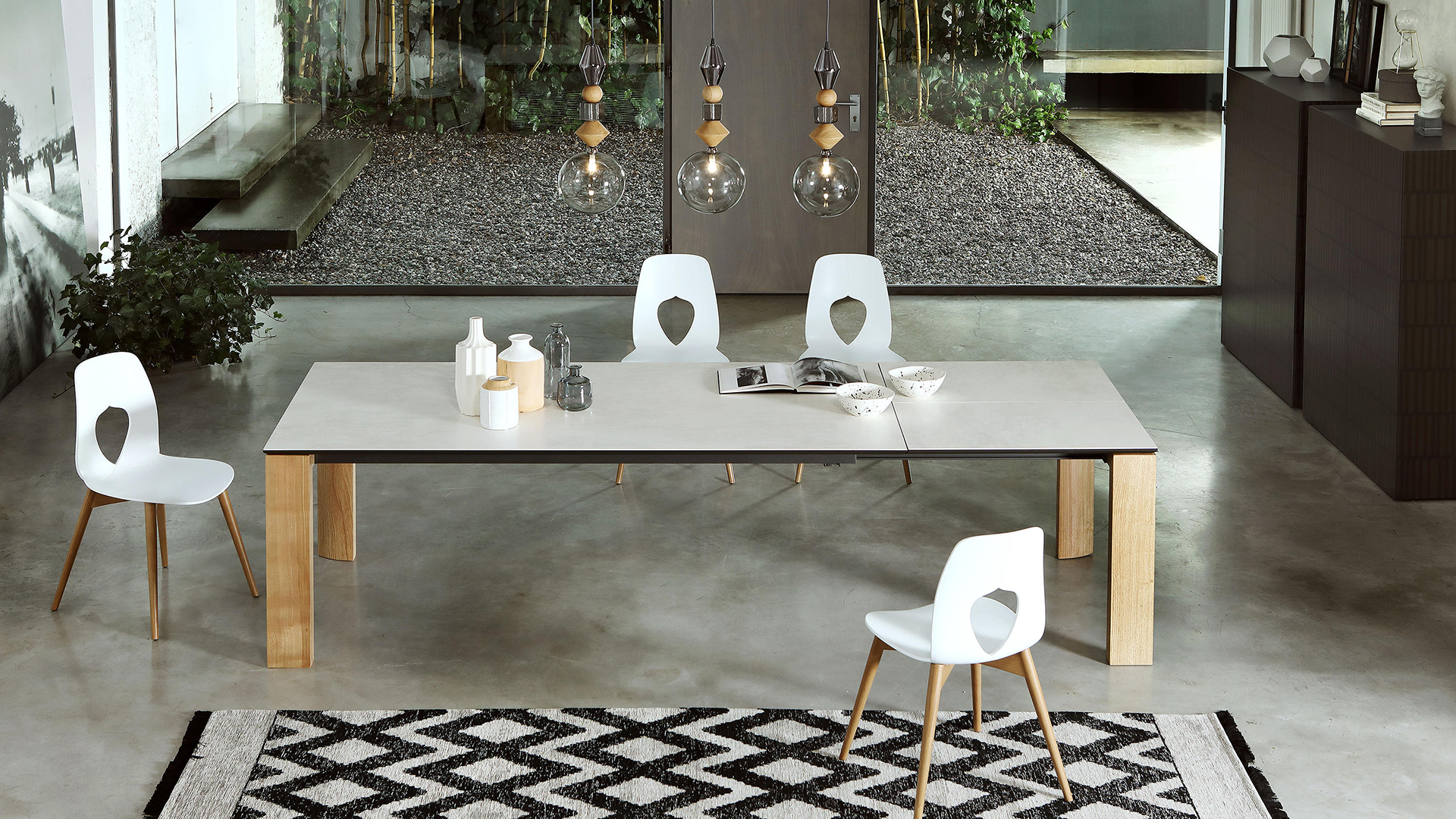 An apparently single top, easily extendible thanks to its butterfly extension mechanism; a ceramic table, and colors that can match the wooden legs’ simple and delicate lines. Choosing the perfect finishing for our painted ash wood, is just as simple as extending the top. Dada represents a vision of interior design, that focuses on essentiality – simple beauty is its most important feature.