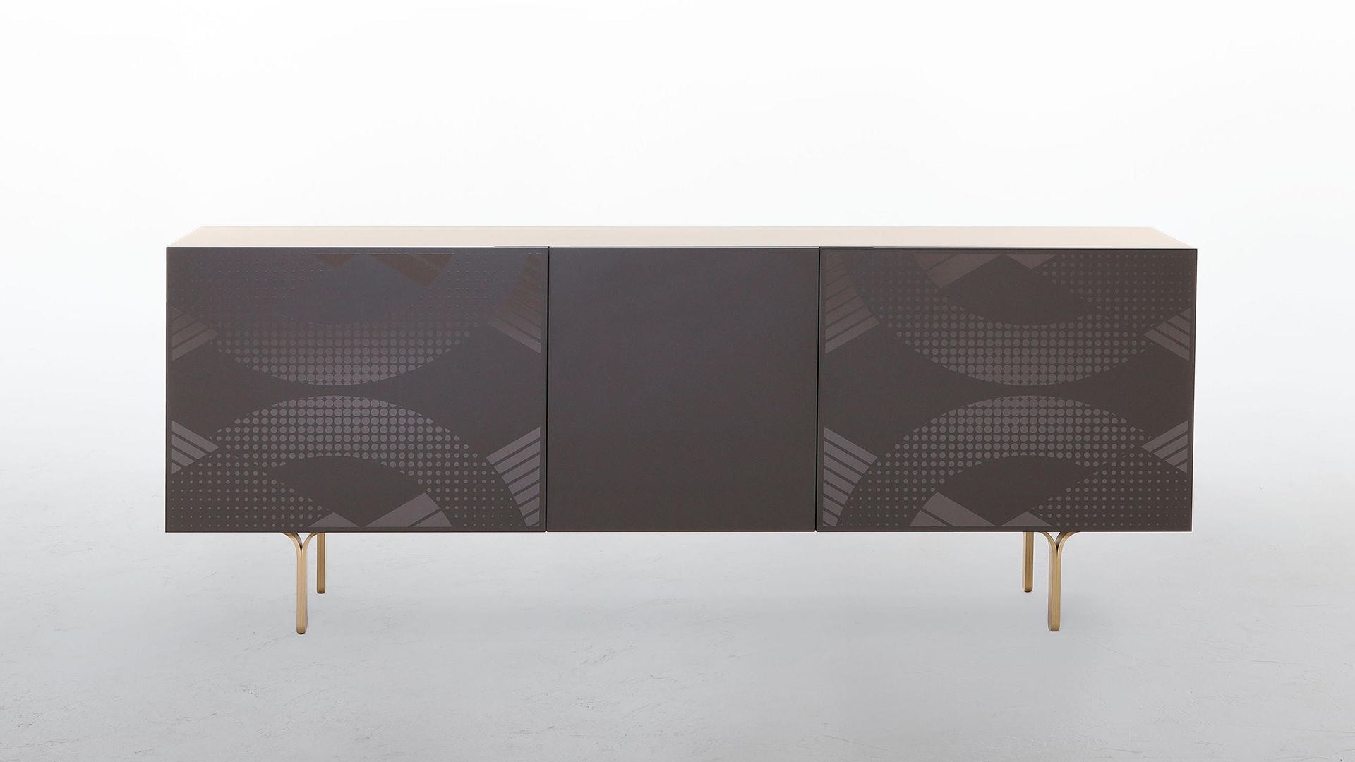 A glance at the Twenties, lights and ballets, intertwining geometries: this is Depop, the best representation of Tonin Casa New Contemporary. Simple metal feet, slightly curving to sustain the wooden structure - which was decorated with a peculiar serigraphy, a texture that will leave everybody speechless. Can you already hear the sound of the cocktail parties?
