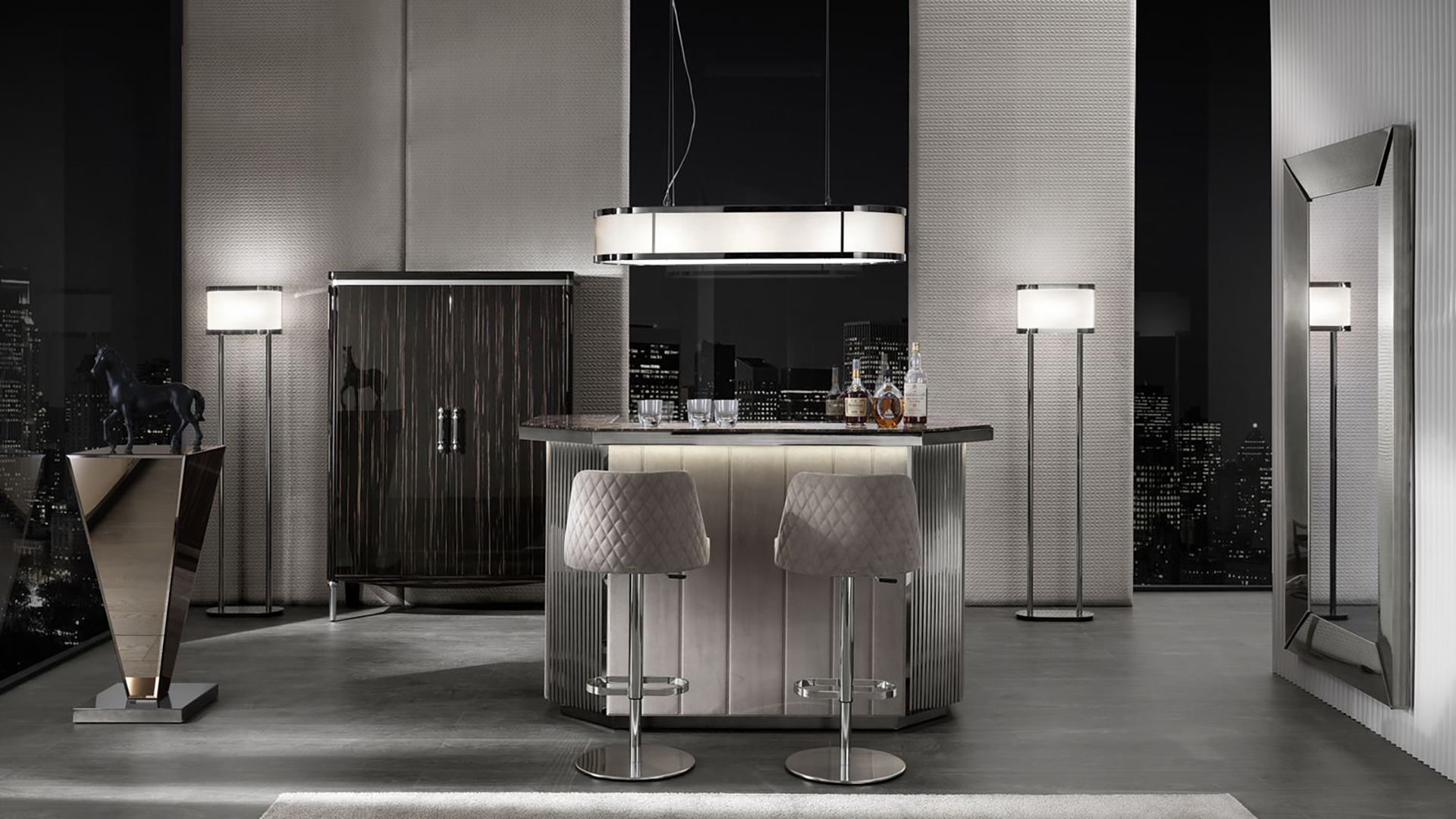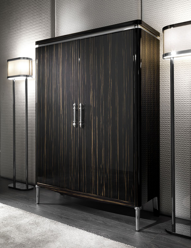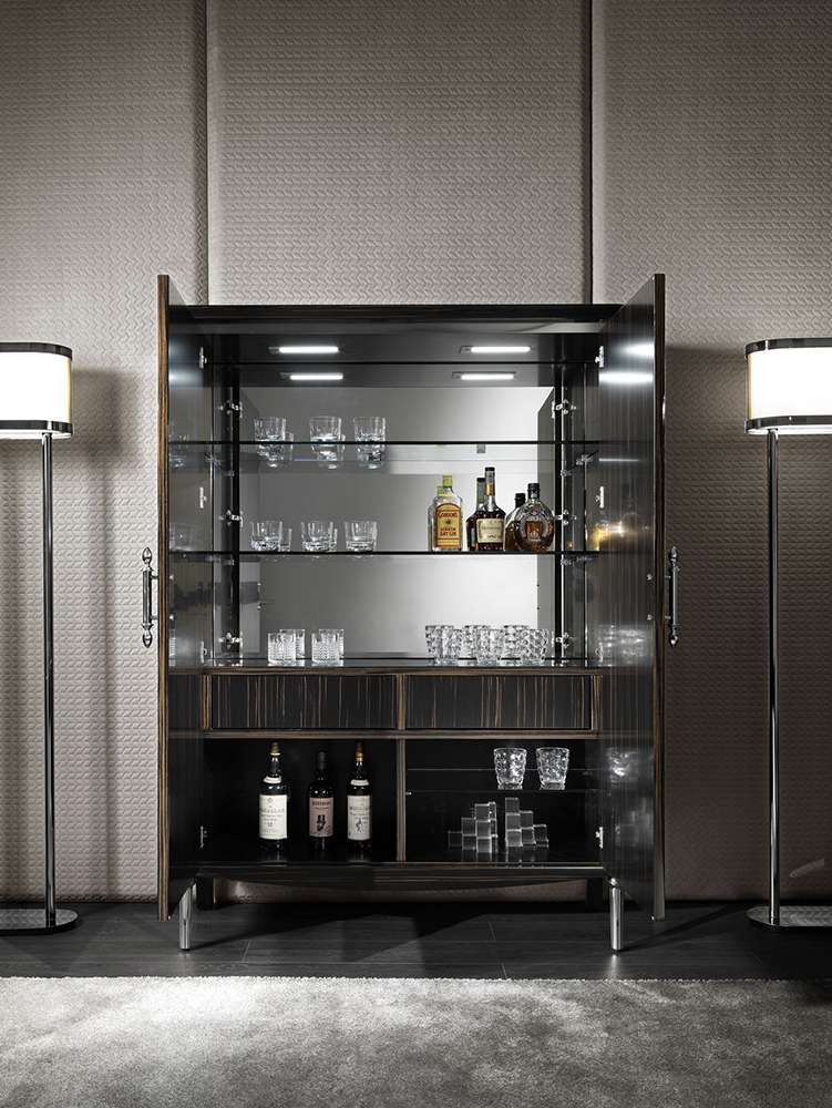 The Egoist bar is one of the largest items in the collection of the same name. Like the whole series, it is made in an expensive solution from an exotic array. A beautiful pattern of valuable wood is the main decoration of the cabinet with internal lighting and functional content.