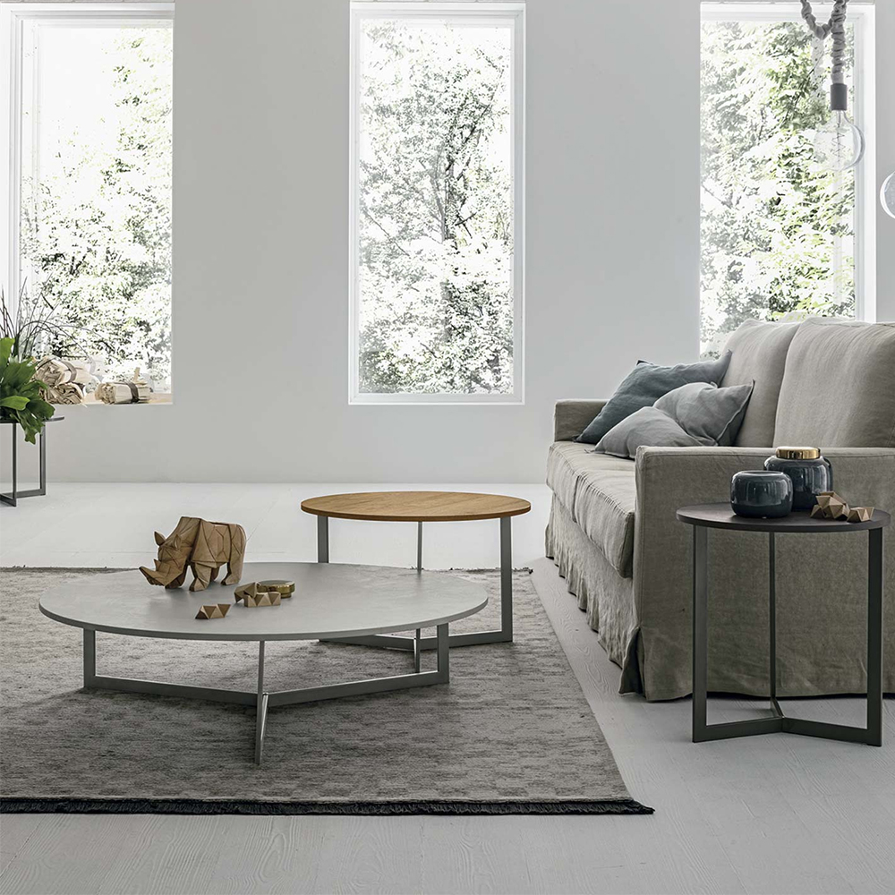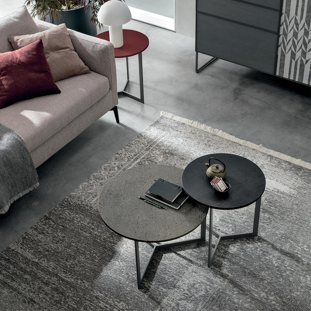 JOY is a collection of coffee tables with a modern and minimal design, characterized by the contrast between the original geometries of the base and the classic round shape of the top. Available in 3 sizes, Joy is highly customizable and extremely versatile!