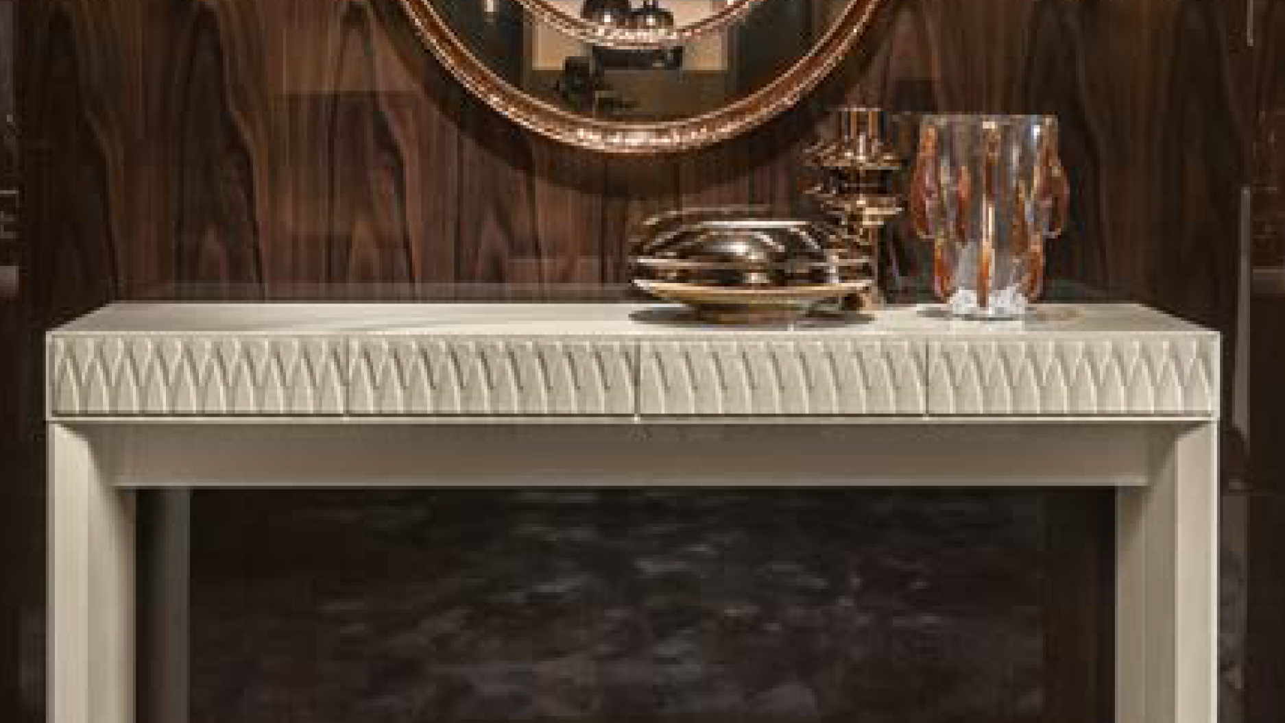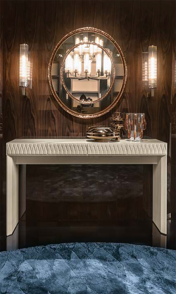 Its traditional lines amaze thanks to the contemporary details as the legs design or the Jersey pattern decorating the drawers. For such reason, it is a console for classic furnishing that also contemplates modern style.