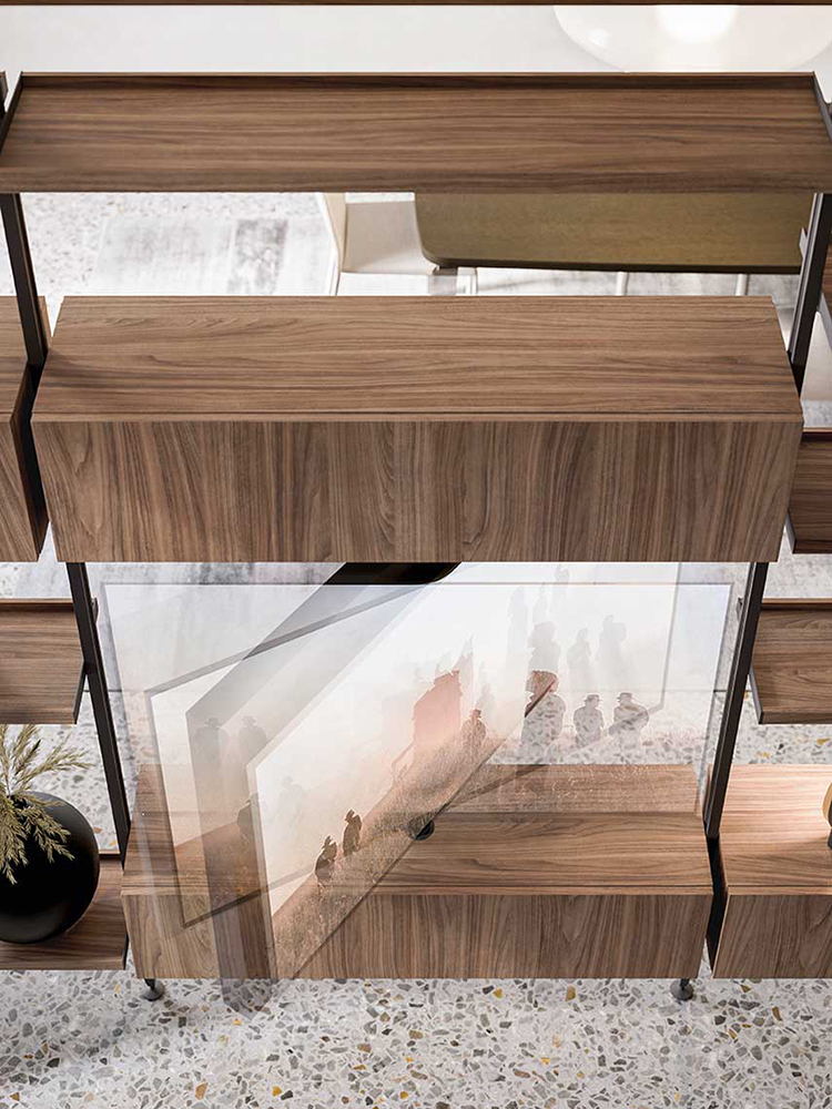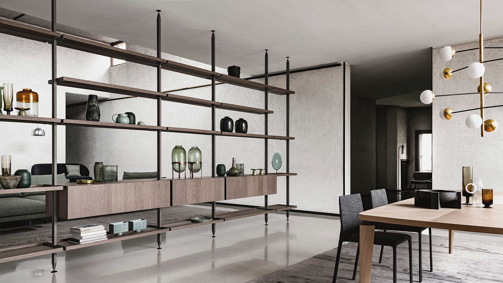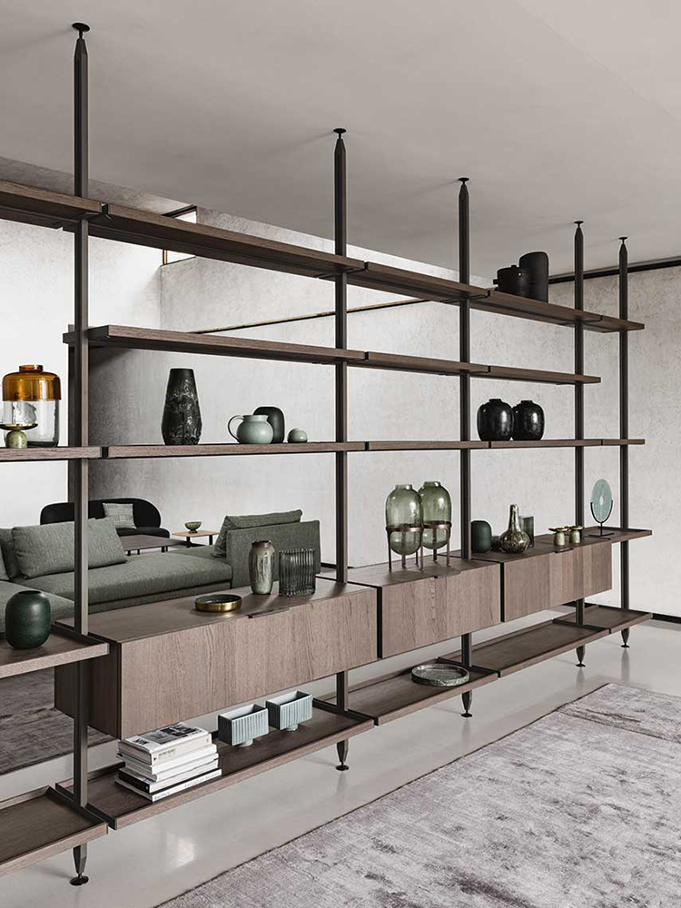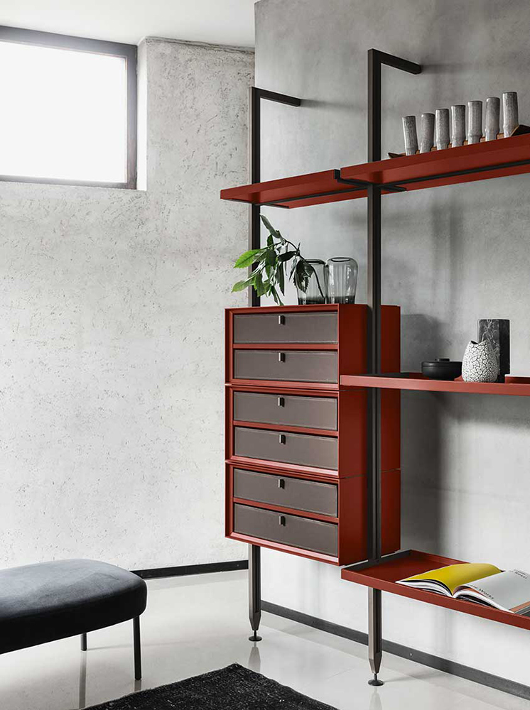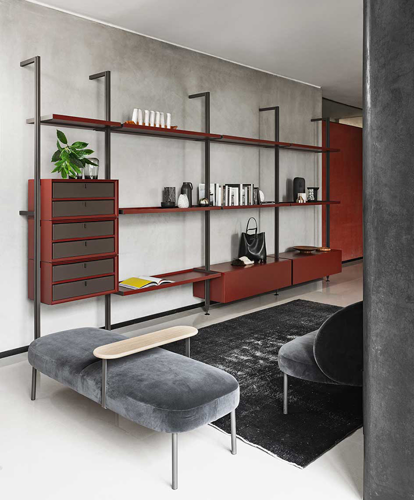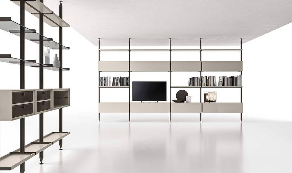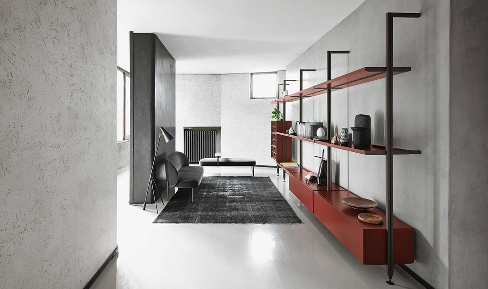 ANTIS is a bookcase unit for your living space that can be freely built. You choose the height and position of the different elements to create many configurations. Each Antis component can be positioned freely at your preferred height, and you can use as many components as you like. Most importantly, this bookcase offers an exclusive, simple hook mechanism for attaching the elements: an aluminium upright with no prefixed hooks or holes, meaning you can move things around whenever you like.