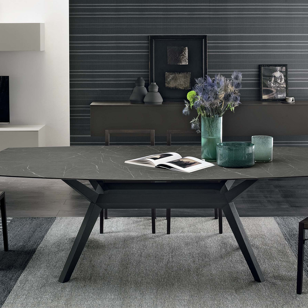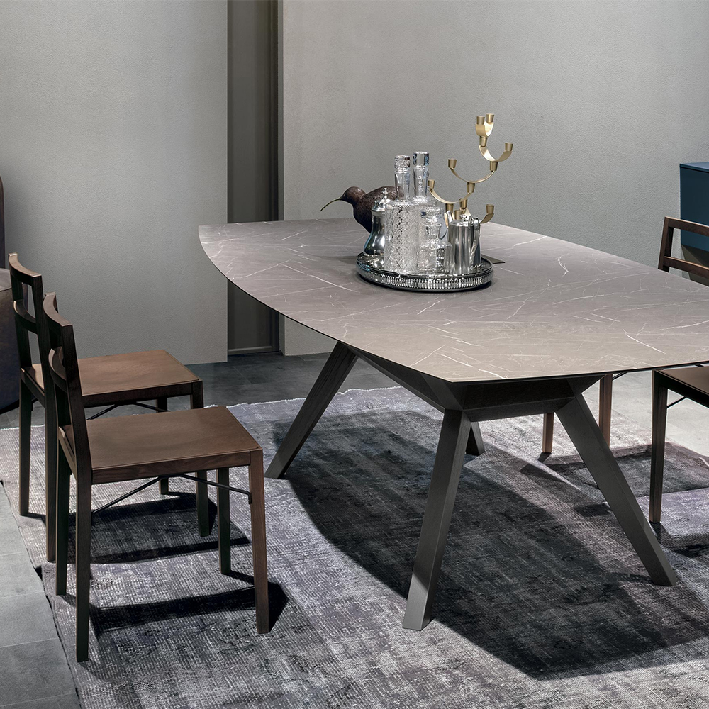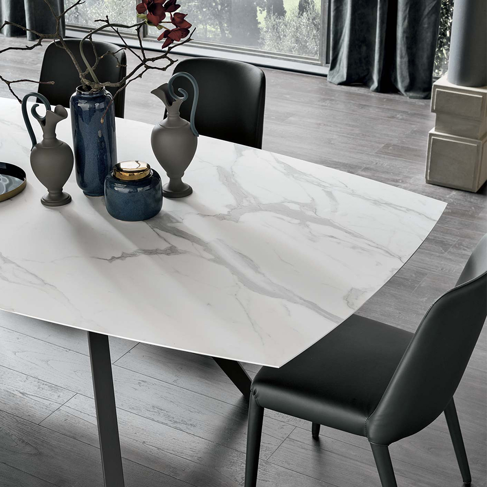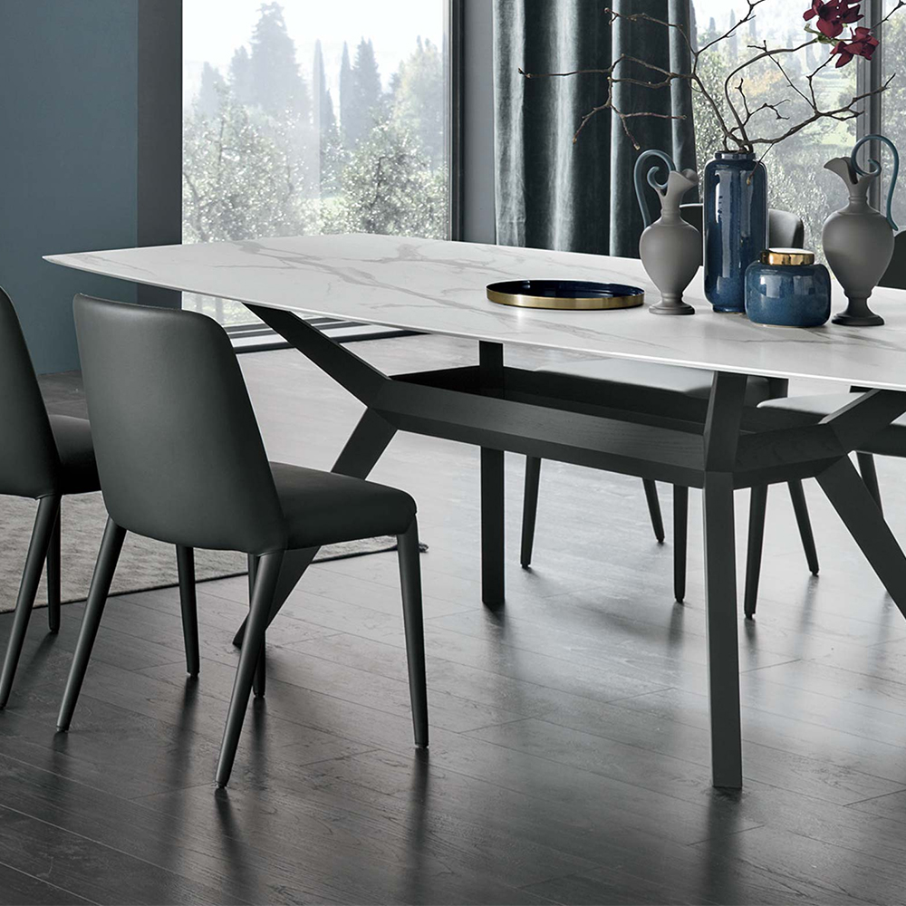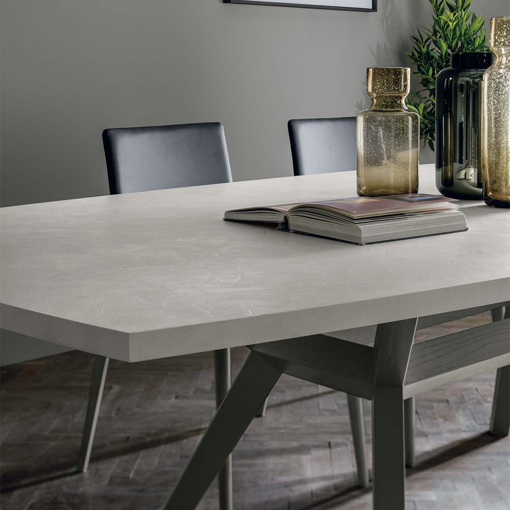 The hpl top of the avalon table adds a new marble-effect texture to the dining room.