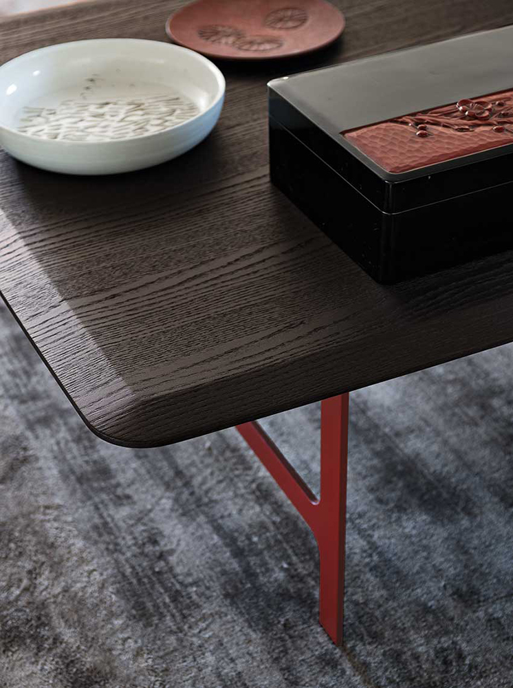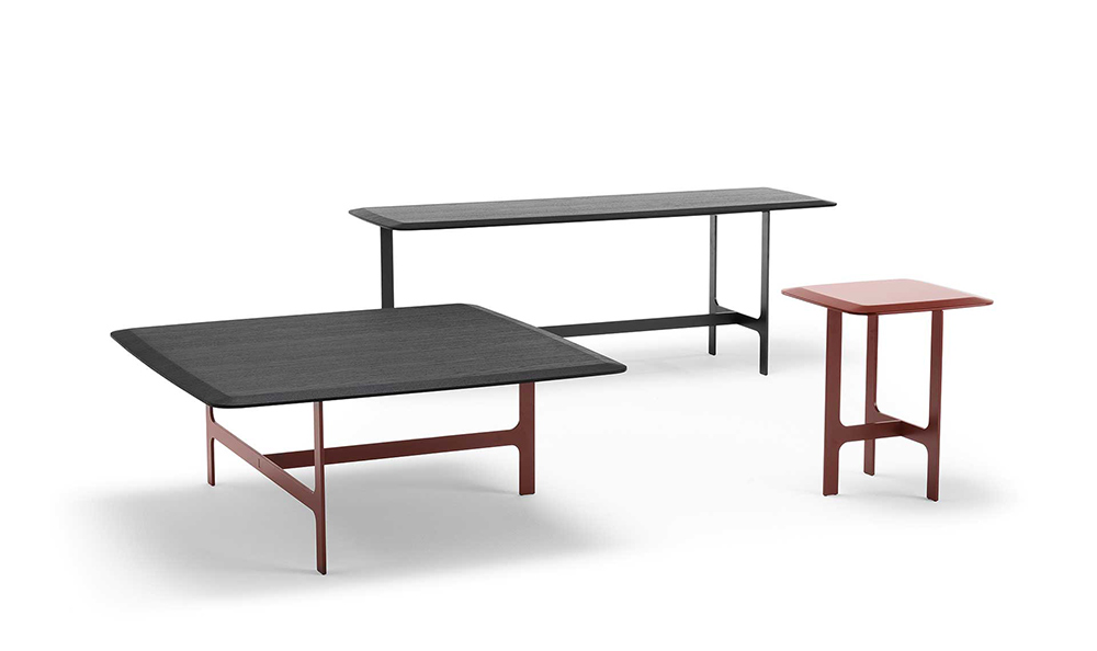 Inspired by Cartesian geometry and the possibility of creating overlaps and intersections that serve a domestic purpose. The geometric shapes are softened significantly by overlapping rounded tops and the connecting beams of the metal frame.