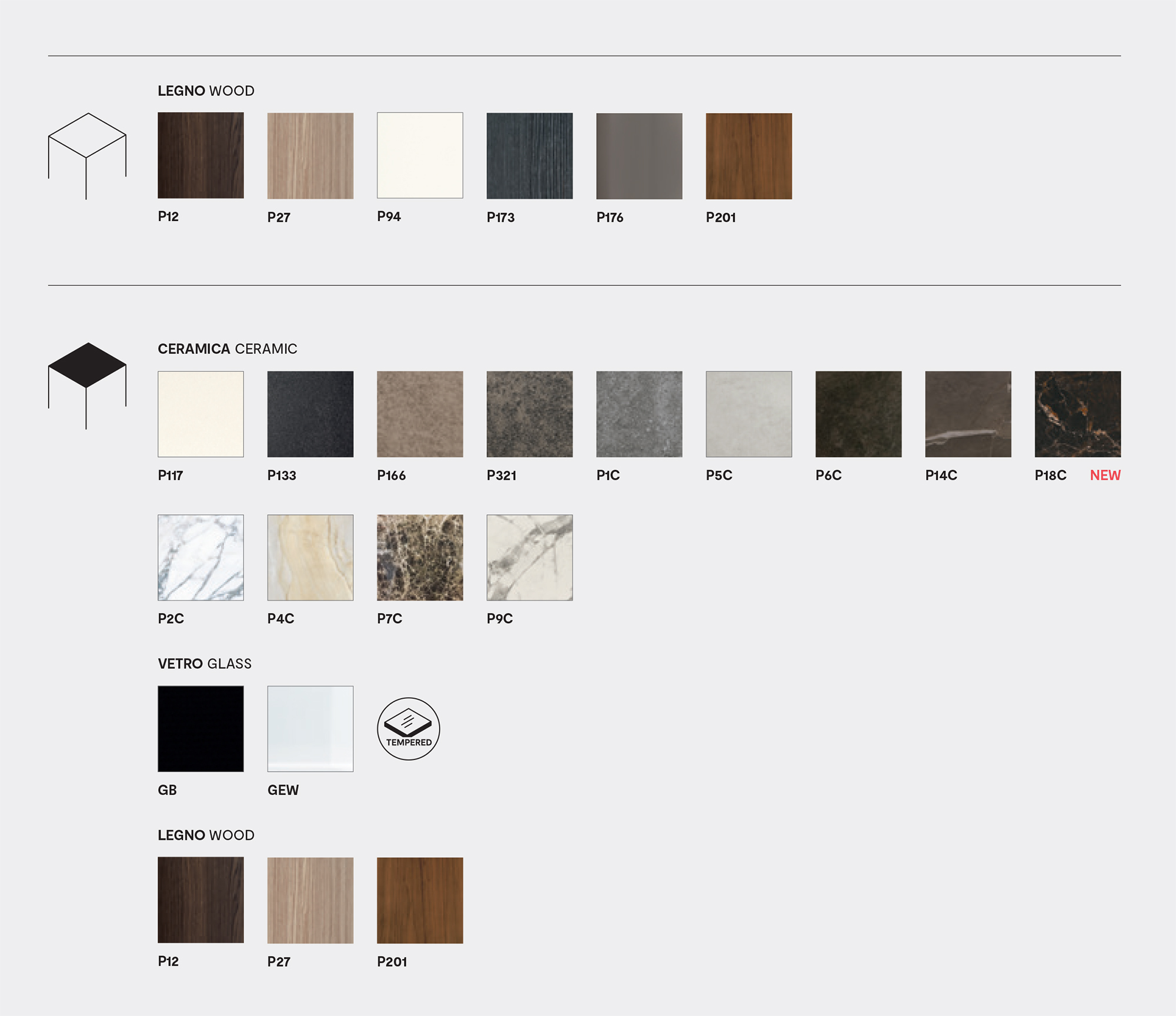 Omnia drop-leaf table with perimeter legs and frame in wood. Rectangular top in wood or tempered glass.