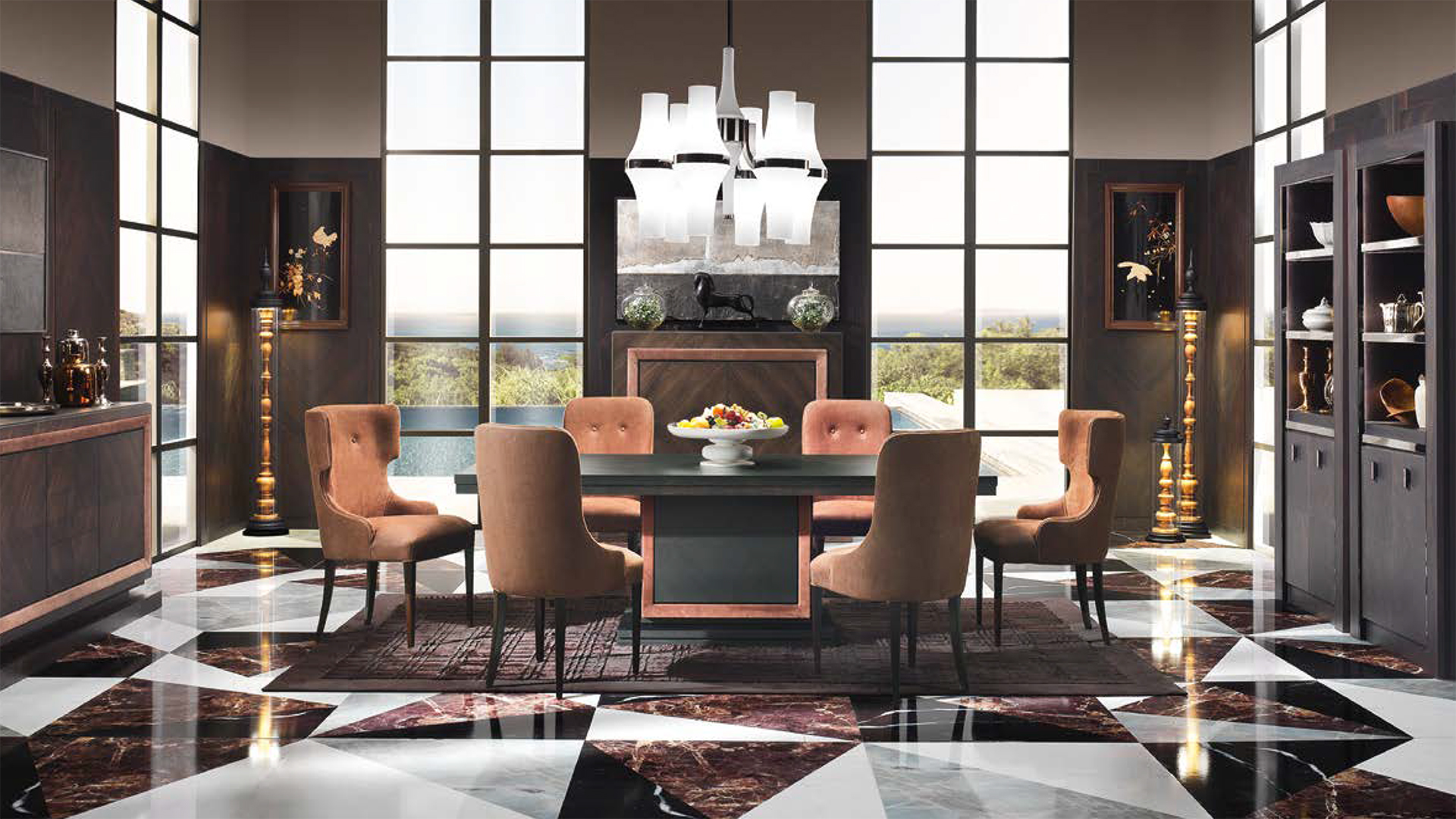 Dining table in modern style wooden Priamo from the Italian manufacturer Smania. The frame is made of wood. The base has a paste from the skin. Finish options: wenge, walnut and rosewood. Accessories from the Nickel & polished stainless steel. Priamo dining table fits in perfectly with the interior and will comfortably accommodate a large family or many guests.