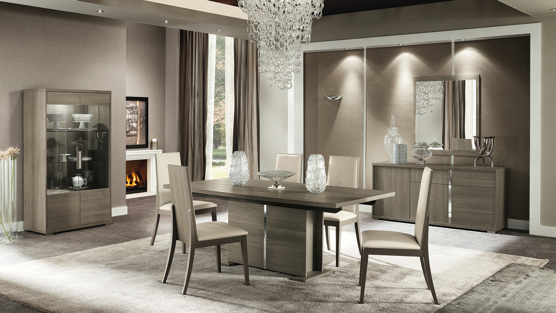 Tivoli Dining Room Set is made of premium quality wood veneer materials, eco-leather, and chrome accents.  This collection offers everything needed to make your dinette area stylish and functional. Rectangular Dining Table is available in two sizes, both with extension that is kept inside. Gorgeous matching chairs are upholstered in soft and durable eco-leather that is super easy to keep clean.