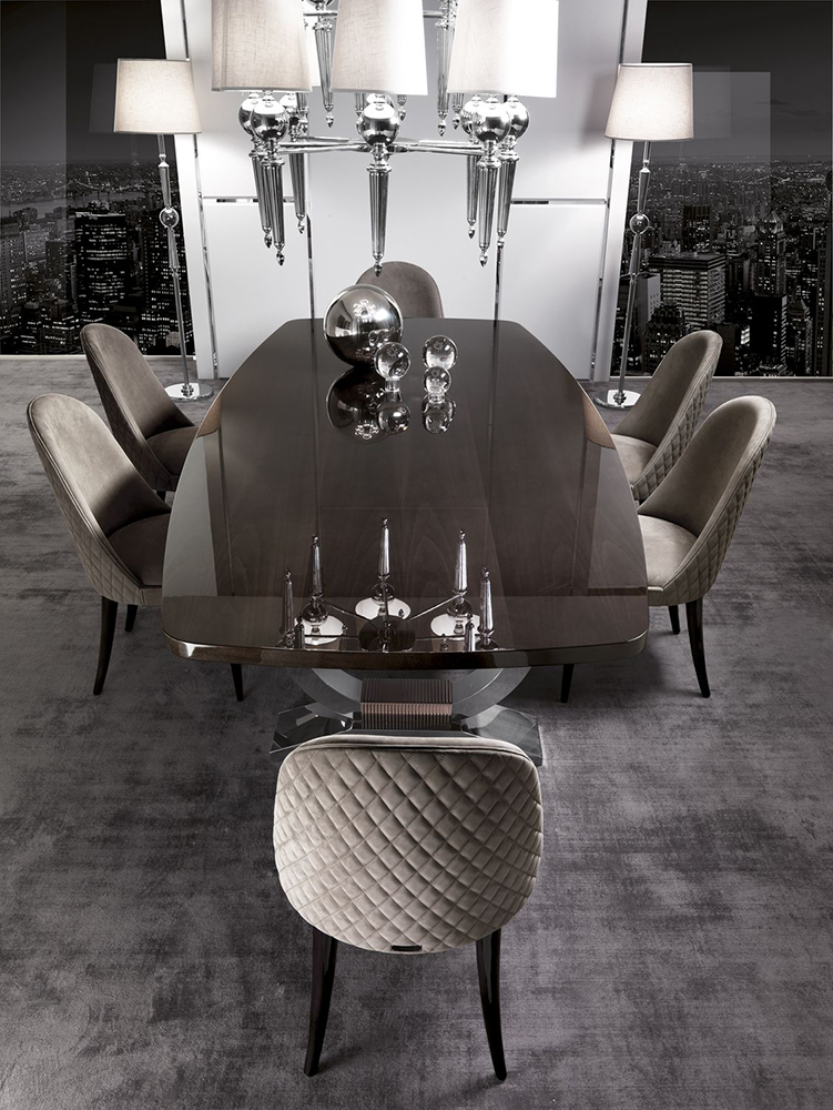 Chair with quilted back. The legs are made of beech and varnished. Various upholstery options are available.