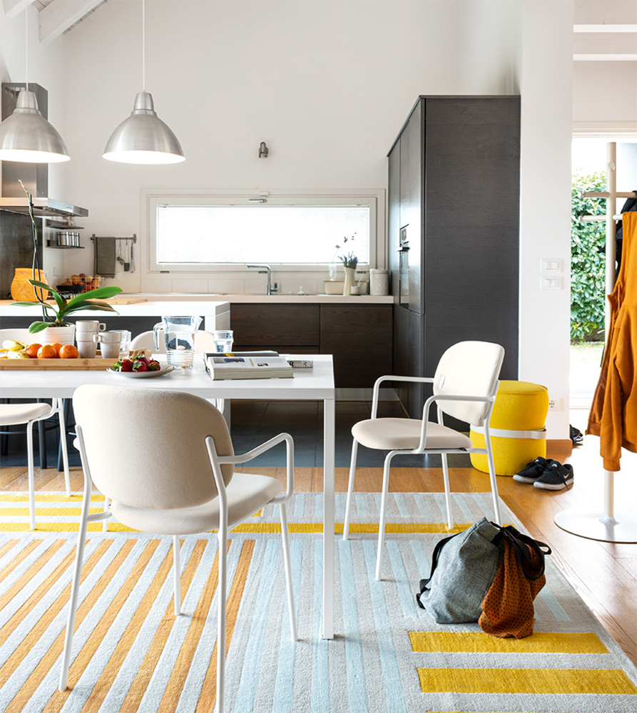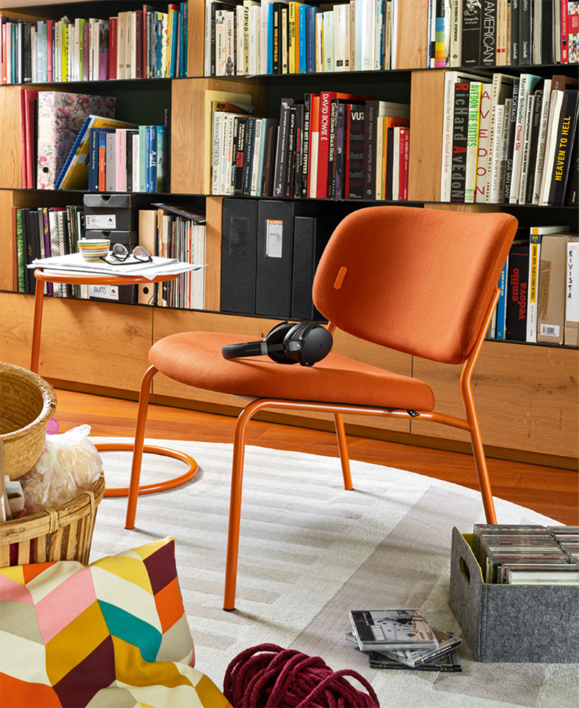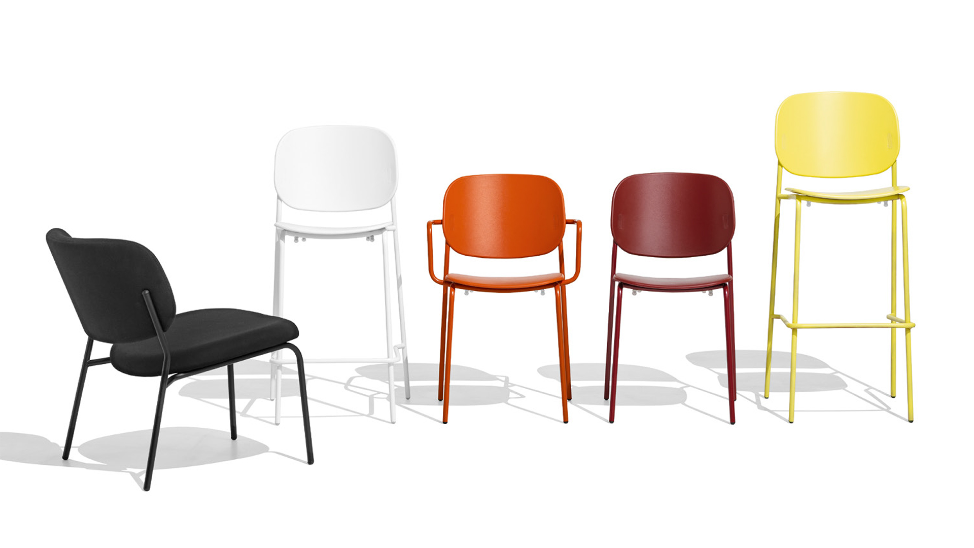Yo! features metal armrests for the best comfort you can get! The various versions are stackable with a padded fabric-covered seat and backrest. Made to match the base, the coloured plastic caps secure the backrest and act as a distinctive trademark for the collection.