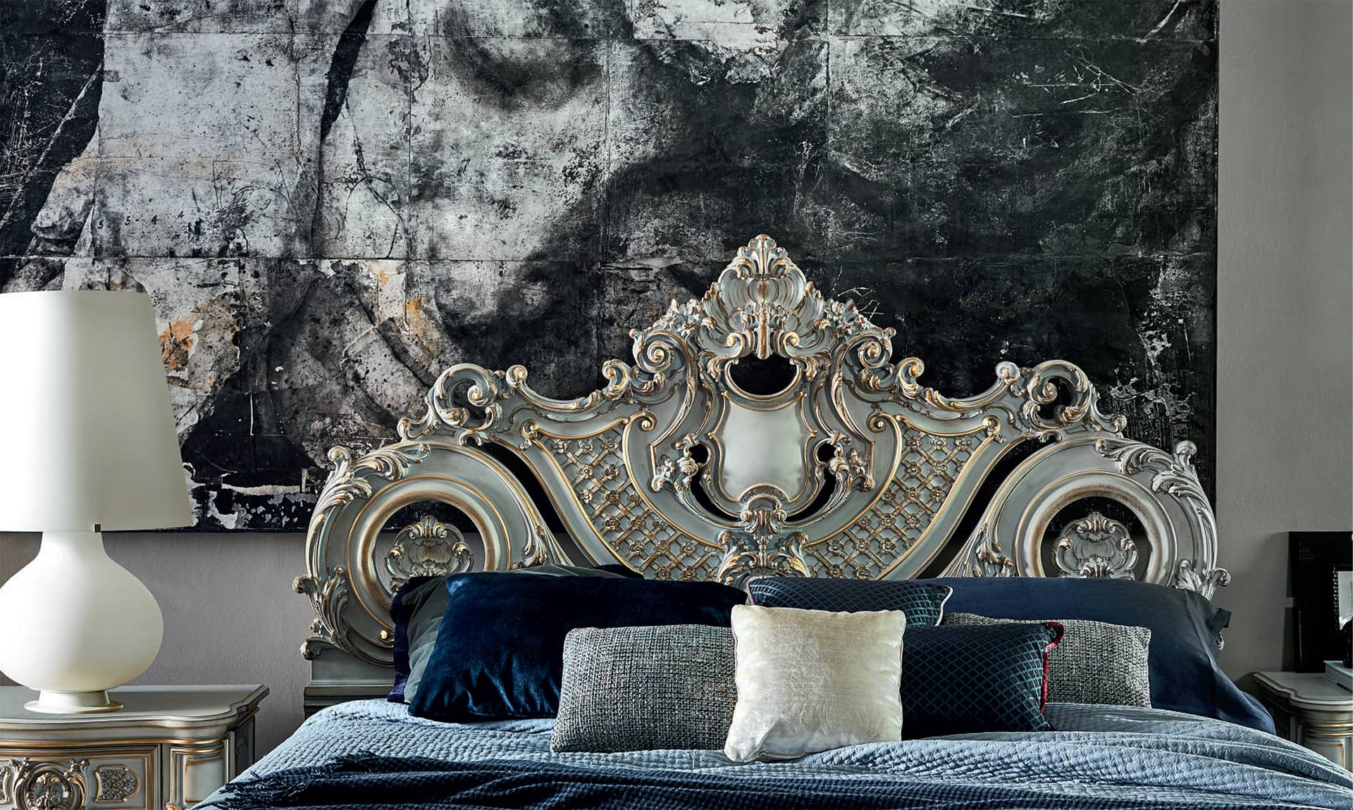 Bedroom, white polychromed finish.