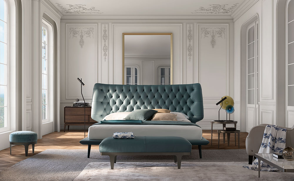A glamorous vintage vibe and a supreme comfortable design beckons you to sink in and succumb to self-indulgence. Its large and lavishly elegant padded headboard brings to the fore the exquisiteness of the hand-tufting. Charcoal-grey metal feet thrust the bed up, giving it an airy elegance. This is a bed for a Natuzzi Italia night filled with Italian dreams.