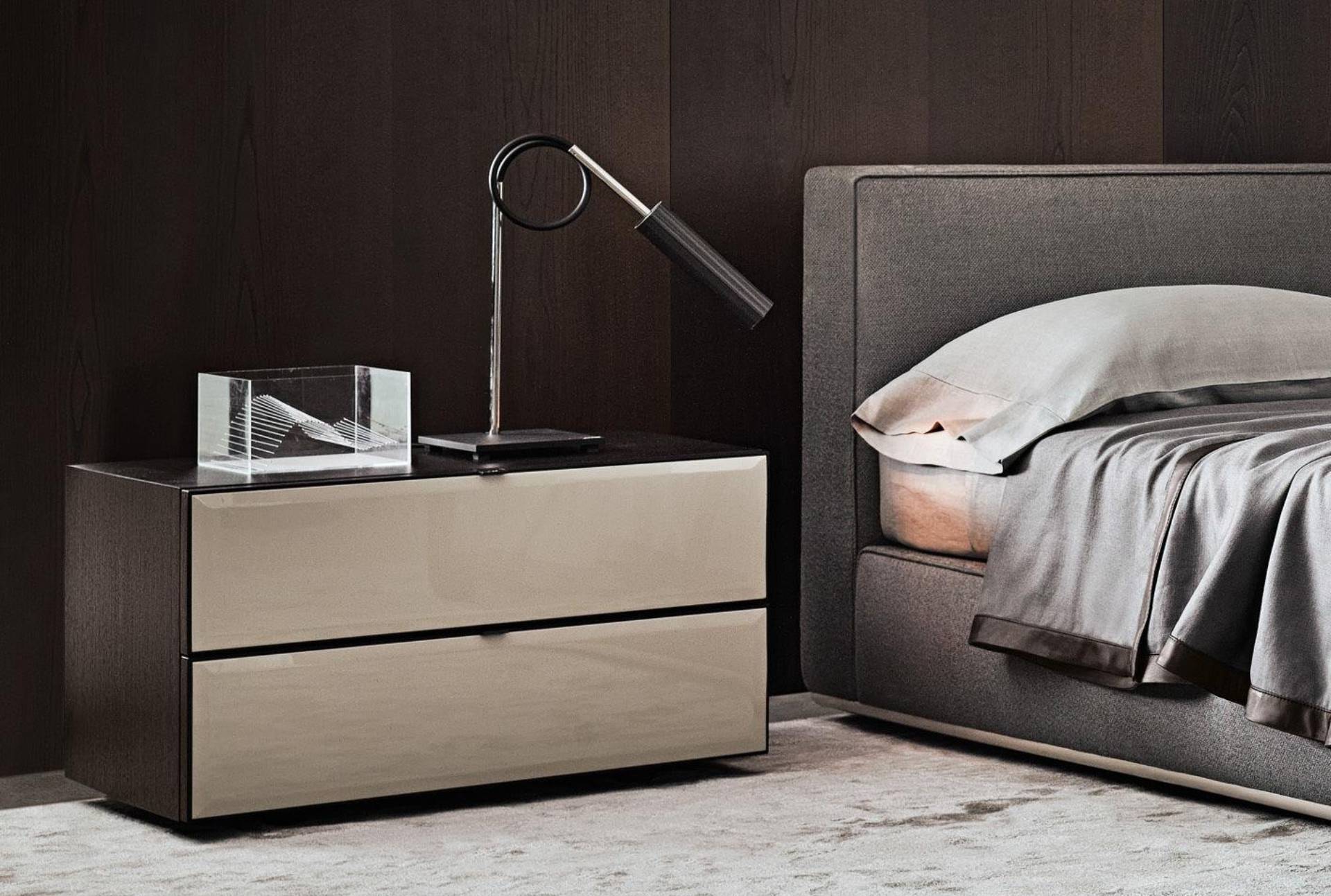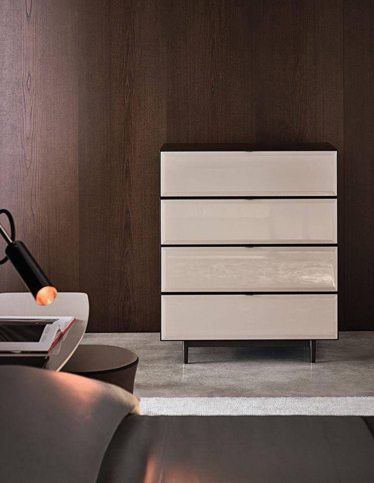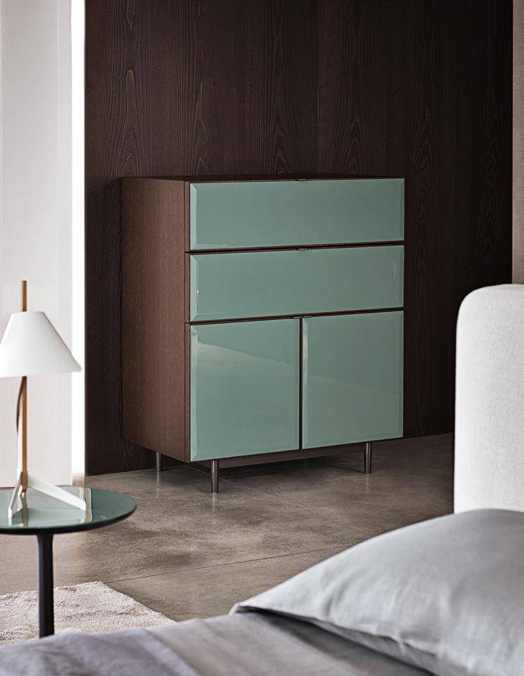 The Morrison storage system eschews the idea of mass production and fully explores the concept of custom-made, developing a collection that expands its purpose to include the sleep zone, with variations on the theme of nightstands and lingerie chests.