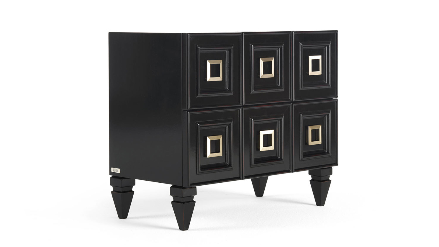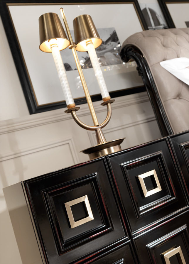 Characterized by destressed shades on woods, slightly antique finishing and brass details, Perry night tables complete your setting with its vintage charm.