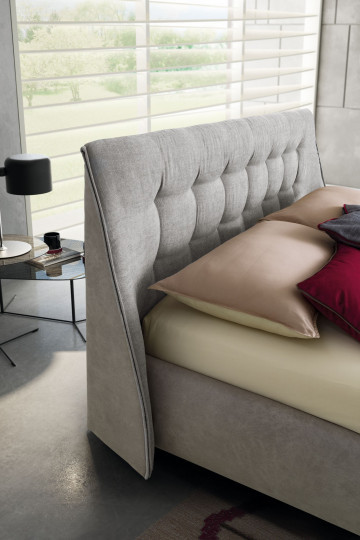 Guscio`s geometry is dominated by a grid of winding waves, which, by inviting sleepers to abandon all resistance, converge with energy towards a central core: that is, a firm headboard that gently stretches its edges until it subsumes the platform. Volumes are here exploited to shield and protect, thus guarding the priceless experience of sleep, which is rekindled by the fine quilt of the upholstery.