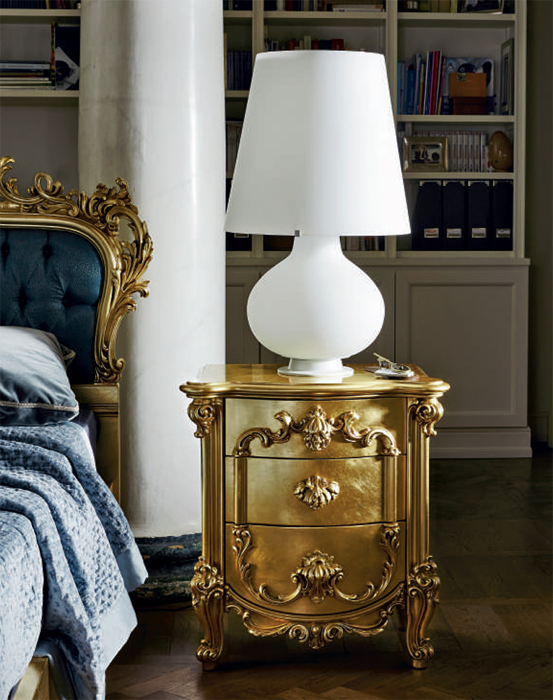 Bedside table Igea from the famous Italian factory Silik. Model with two drawers. All models are painted in special, hermetic chambers, in addition, completely decorative elements are painted by hand. In this way, items can be completely personalized and unique. The factory offers a huge number of finishes, including the volume and factory business card Silica-coated with gold foil.