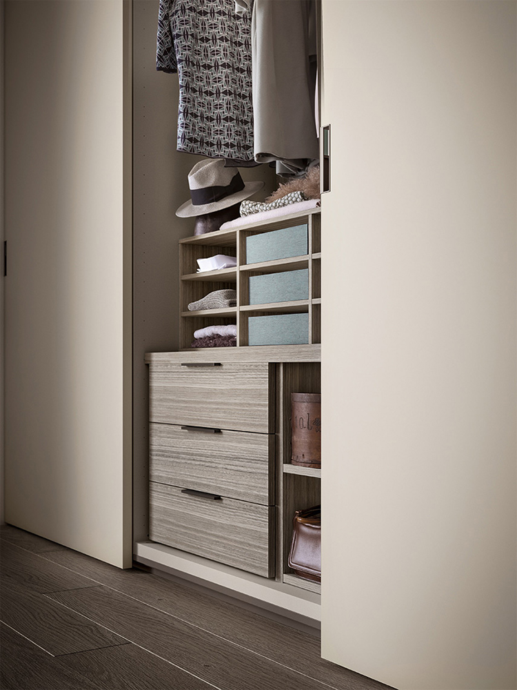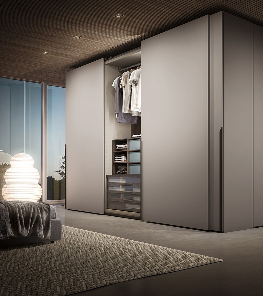 The Simple modular wardrobe is available with hinged or sliding doors and is an element that cannot be renounced in a self-respecting bedroom, well furnished and functional.