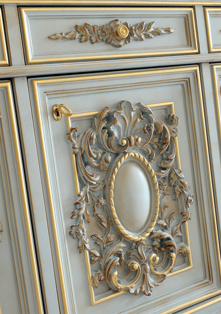 Headsets for office Giove, from the Italian manufacturer Silik. Includes a Desk, chair and bookcase . The frames are made from solid wood. Finish furniture lacquer, decoration decoration -gilding. Seat cover and cover plates on the table made of leather. The armrests are complemented with soft inserts. Decoration is the decorative thread.