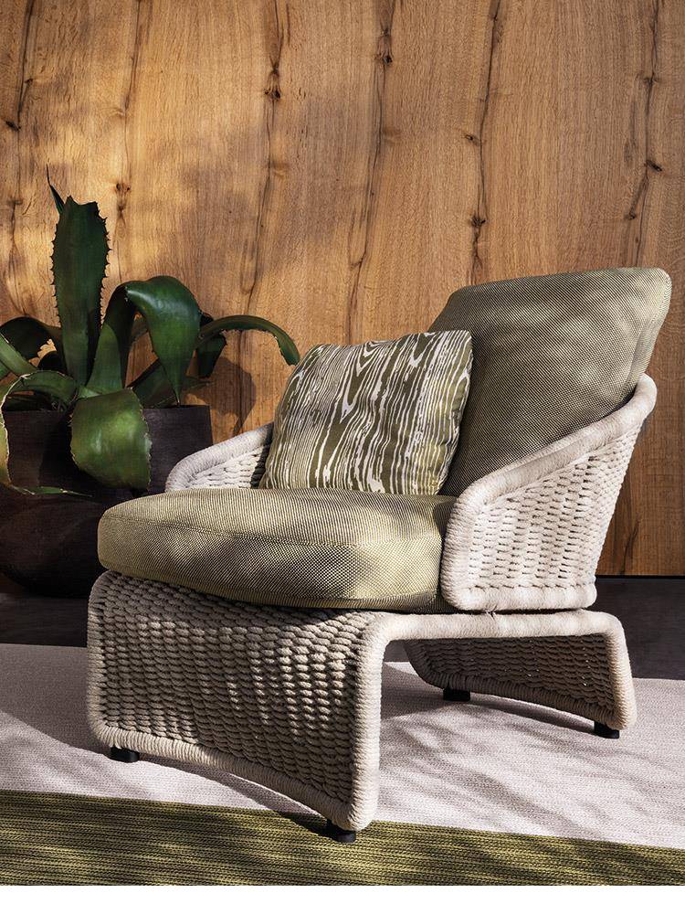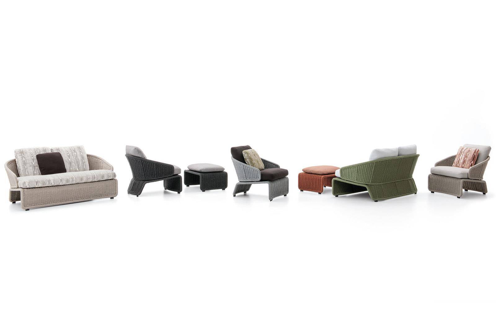 The Halley “Outdoor” family includes an armchair, footstool, sofa and daybed. Thanks to their streamlined proportions, they bring stylish, elegant decor to any setting, even urban and hospitality spaces.