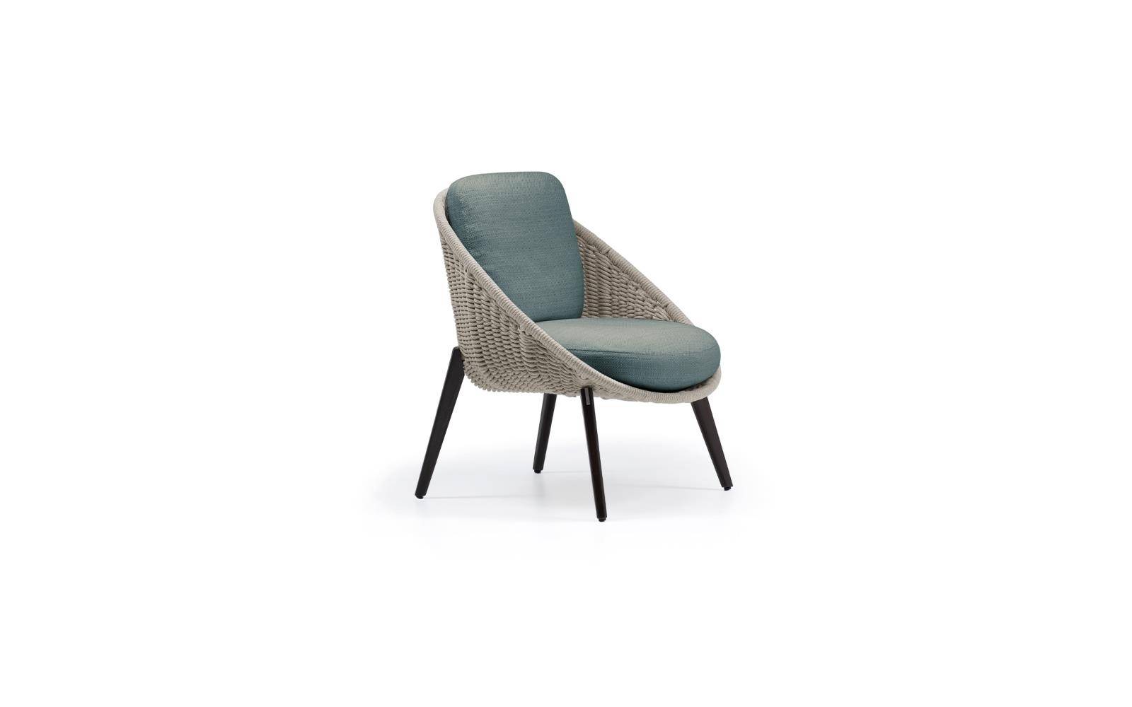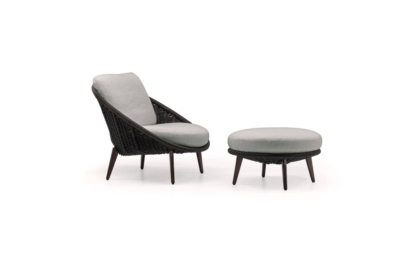 Lido Cord Outdoor is comprised of a sofa, armchair, footstool, dining and lounge little armchairs, all with an enveloping design that conveys the idea of a comfortable nest.