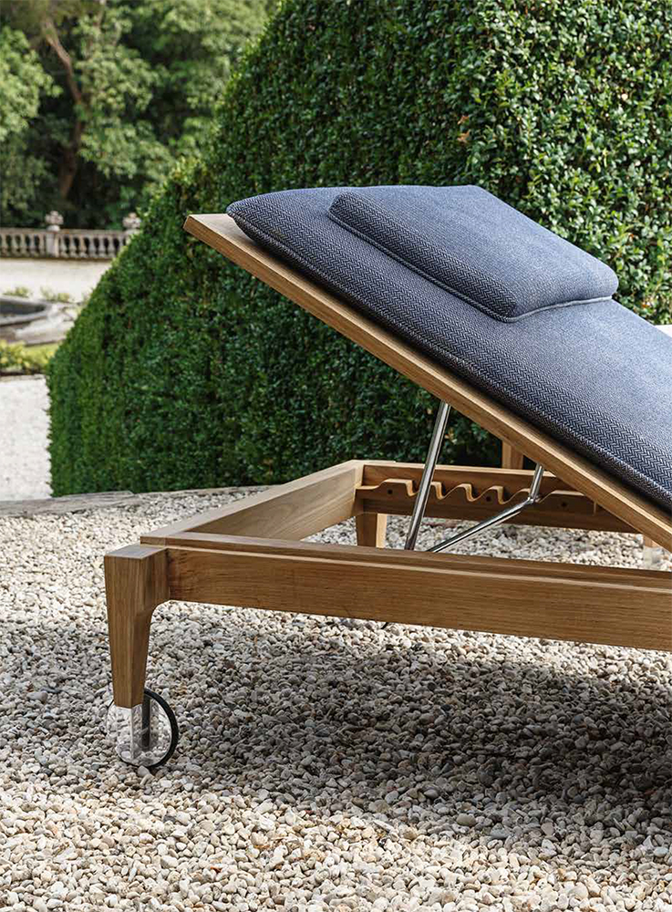 Palmas is synonymous with relaxation. As all chaises longues, it not only ensures a comfortable seat, it goes beyond this. The absolute comfort is provided by the elegant design and the freedom to choose the perfect upholsteries for your outdoor swimming pool furnishing.