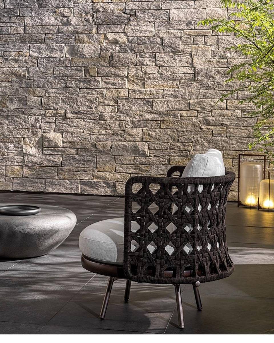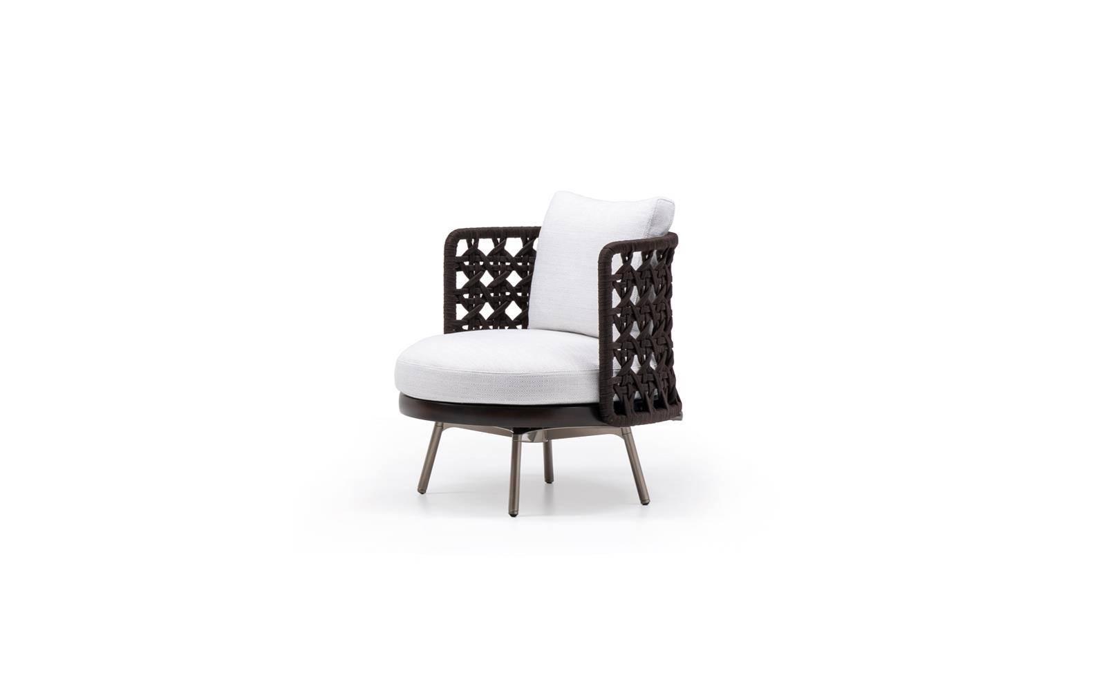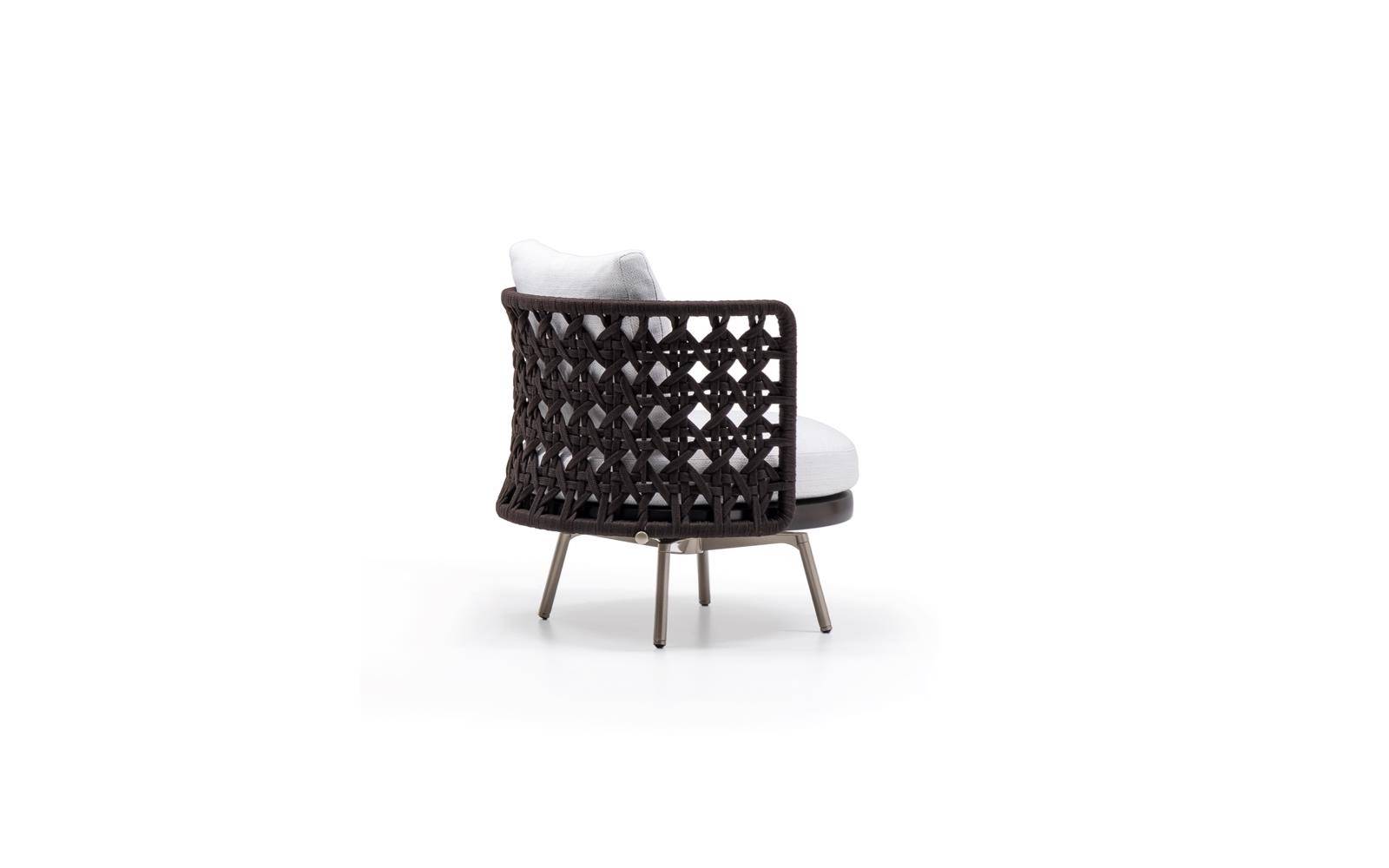 Designed for indoor environments in 2020, Torii Nest migrates to open-air living spaces, in the armchair, lounge and dining little armchairs versions. With structural details linked to Japanese tradition, the seats play with round edged volumes, thin profiles and the apparent formal simplicity of an extremely intricate design.