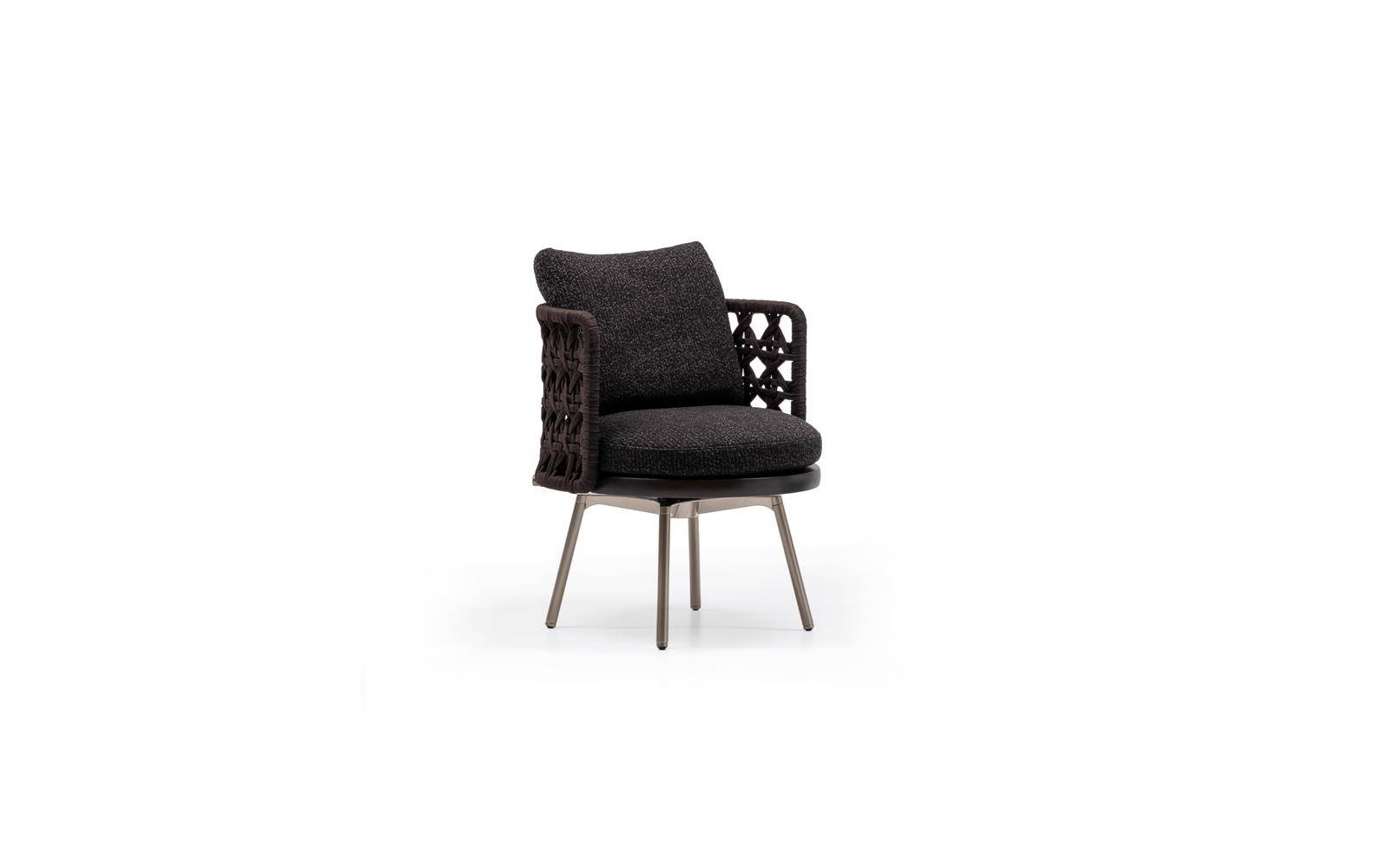 It sits on a base in natural teak or Dark Brown stained mahogany, supported by varnished aluminium legs with a polished, Bronze-coloured, anti-touch finish. With its backrest in the shape of a perfect circle, and a sophisticated visual lightness that embraces the padded seat, Torii Nest Outdoor was conceived to meet various requirements, in terms of both functionality and ergonomics.