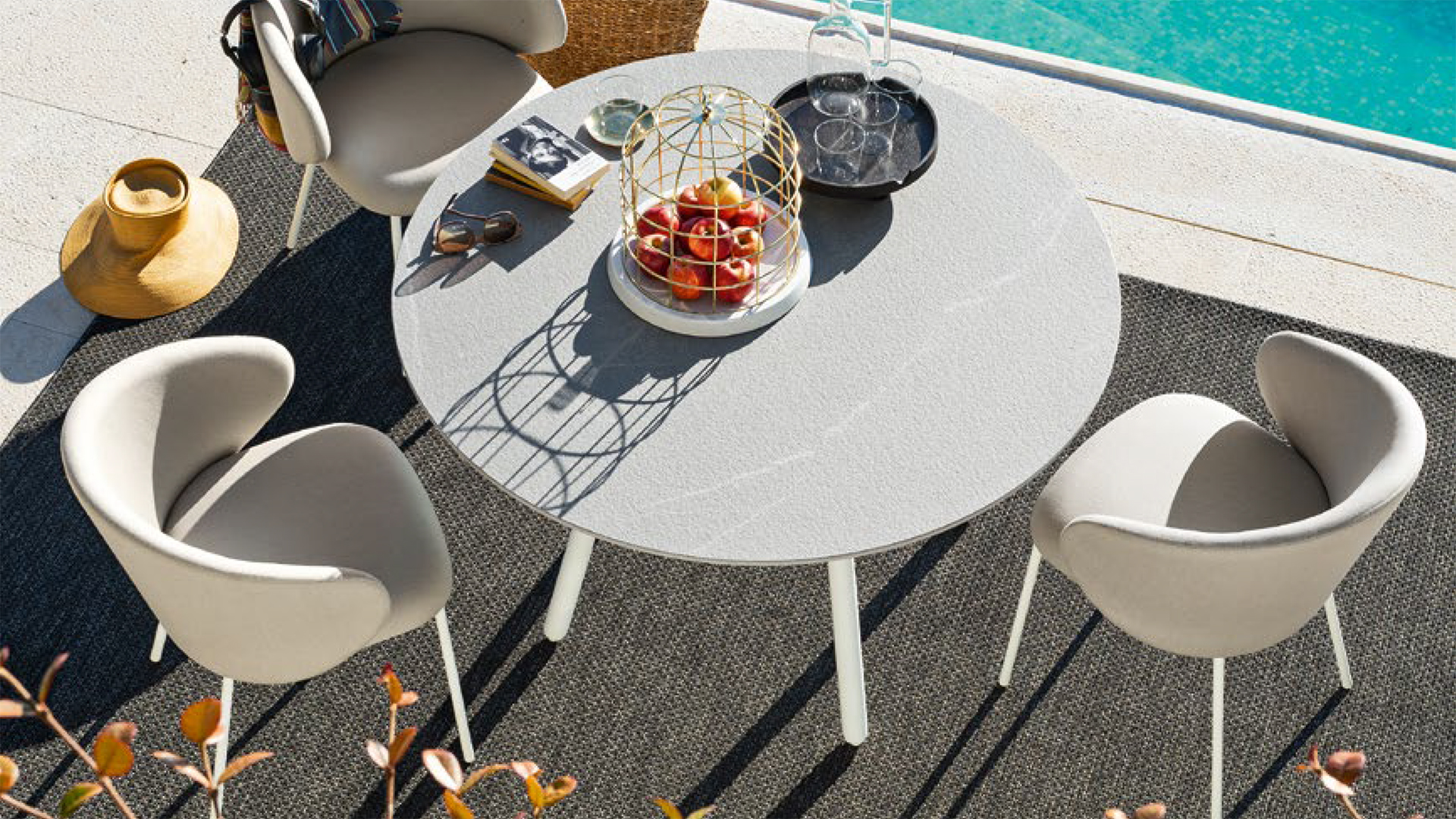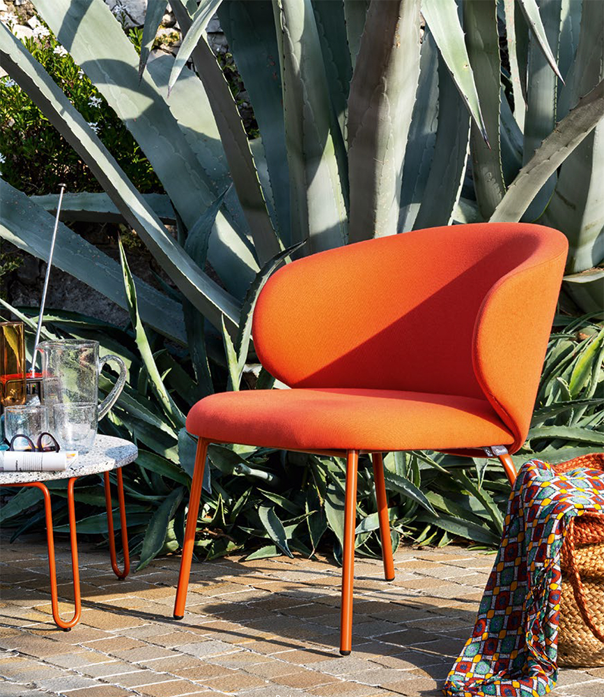 Tuka has a tubular-metal frame which has been treated and coated for outdoor use. The seat and large wrap-around backrest have been filled with a water-draining padding. Made from water-repellent Sunbrella® fabric, the covering protects against the fading effect of UV sunlight, as well as being mouldproof and stainproof. You will be looking for reasons to invite friends around for a lemonade on the patio!