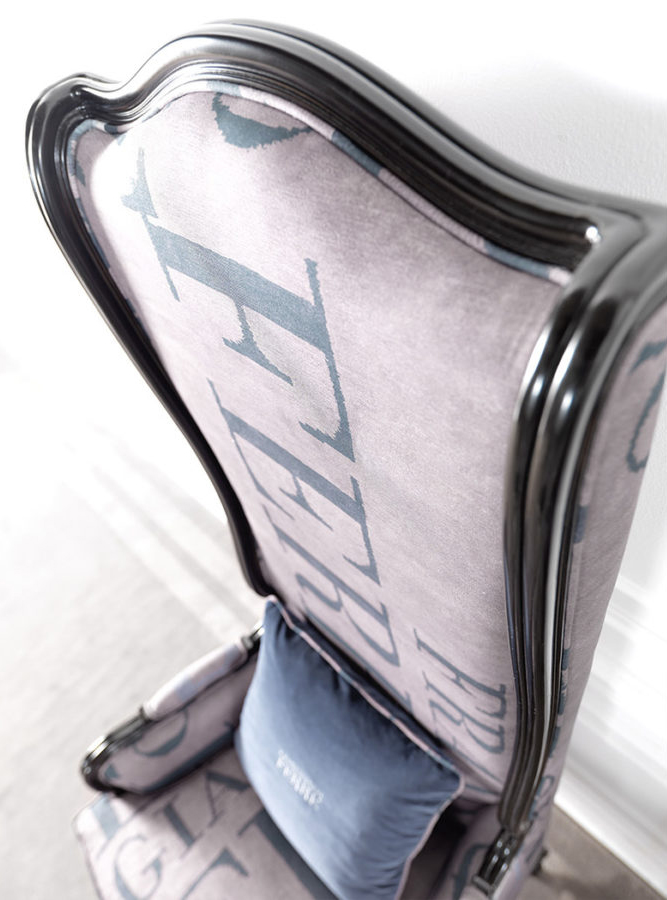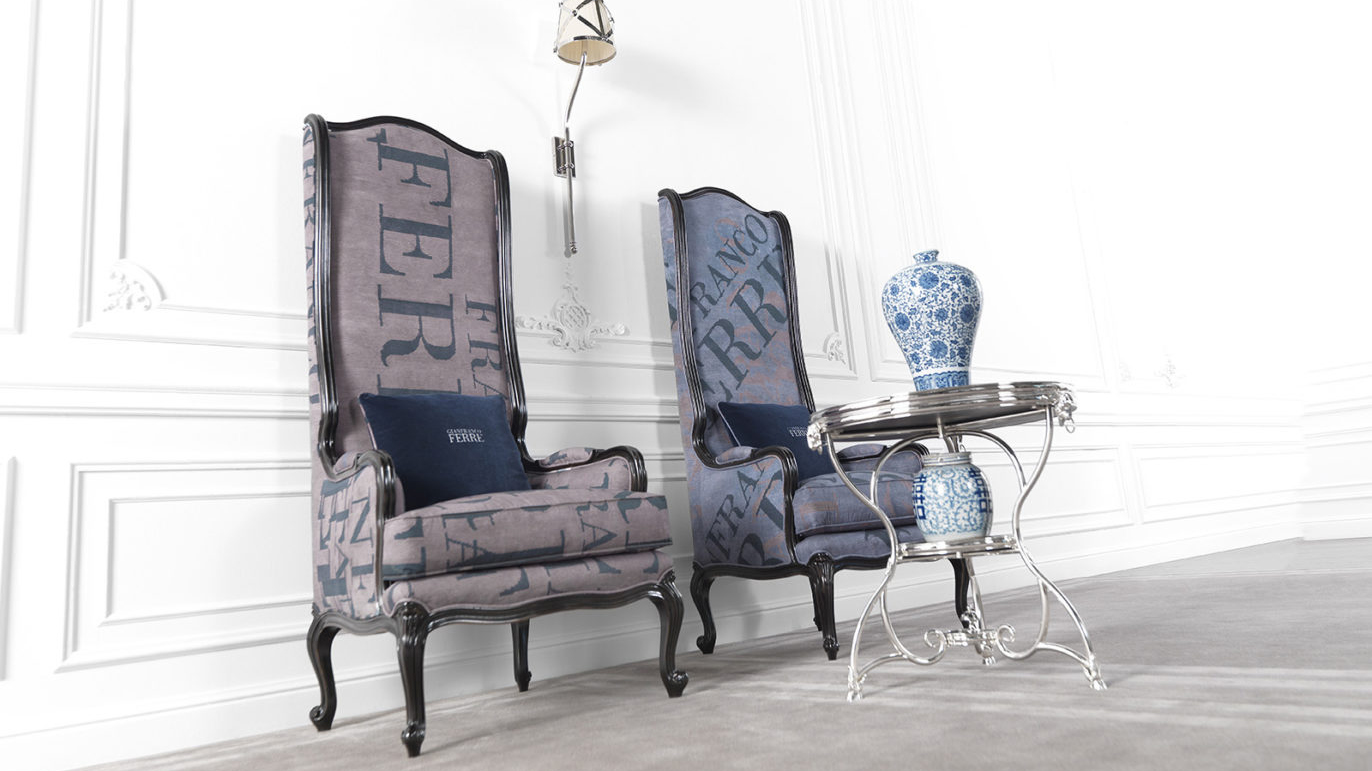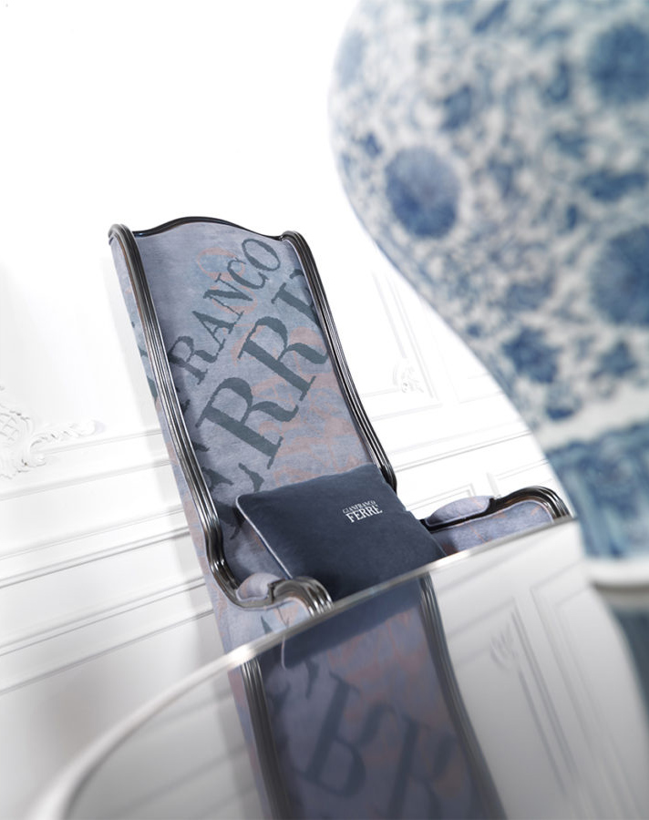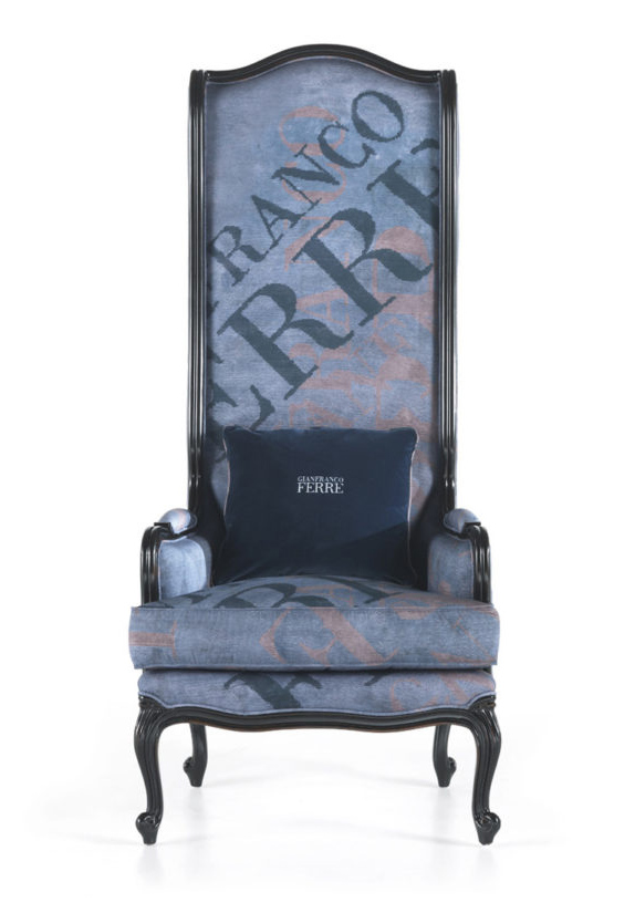 A regal and impactful armchair with an imposing, long seatback and feet in Louis XV style. Featuring Gianfranco Ferrè branded texture, it reflects the soul of the brand: eclectic and unconventional.