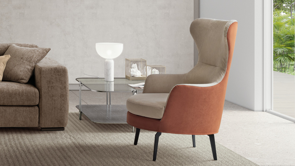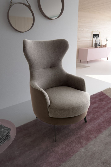 More than just furniture, Dodo is a veritable work of art that decorates and embellishes the empty corners of home. Its playful silhouette outlines an engaging interplay of comparisons and contrasts between the armrests and the crest. Provided with a unique design, such armchair enjoys an unconventional arrangement of volumes, thus answering to the call for structural balance and the discovery of uncharted levels of comfort.