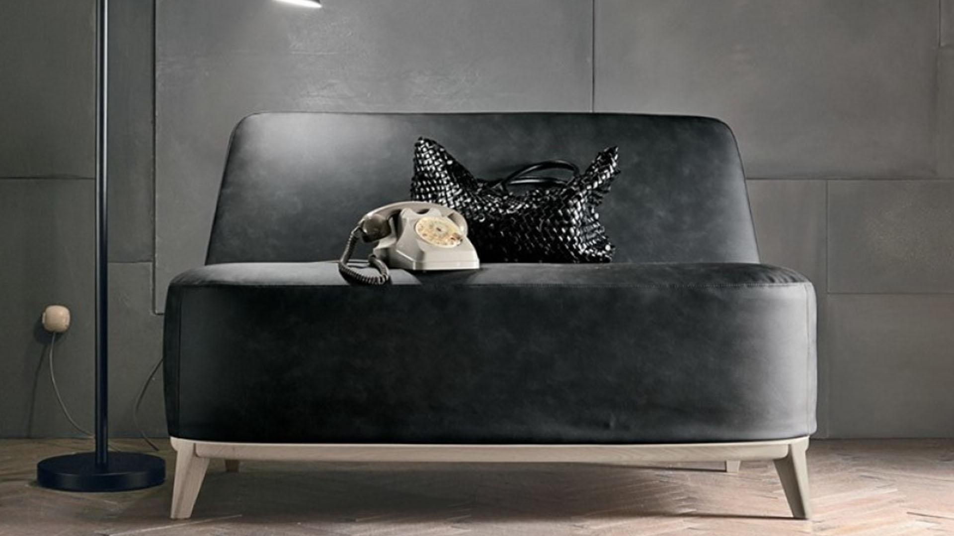 Loft is a small sofa with compact dimensions that conquers for its soft lines and its retro-inspired design, enhanced by the oblique wooden feet! Simple and versatile, the sofa can be combined with the armchair and small armchair of the homonymous collection!