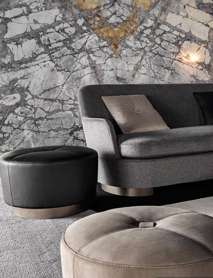 All of the seating elements share the enveloping lines that offer a pleasant sensation of welcoming warmth, thanks to the soft cushioning in the seats and backrests. Structural perfection and flawless tailoring underscore the high level of expertise achieved by the company over the years and are the consummate expression of its masterful craftsmanship.