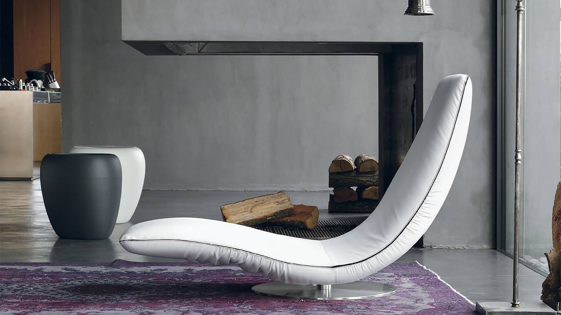 Ricciolo is an armchair, a chaise-longue, a product that can make every room unique. The patented folding mechanism is what makes this curly seat a must. Different upholsteries are available, such as leather, eco-leather, grain leather and Orchidea elastic fabric.