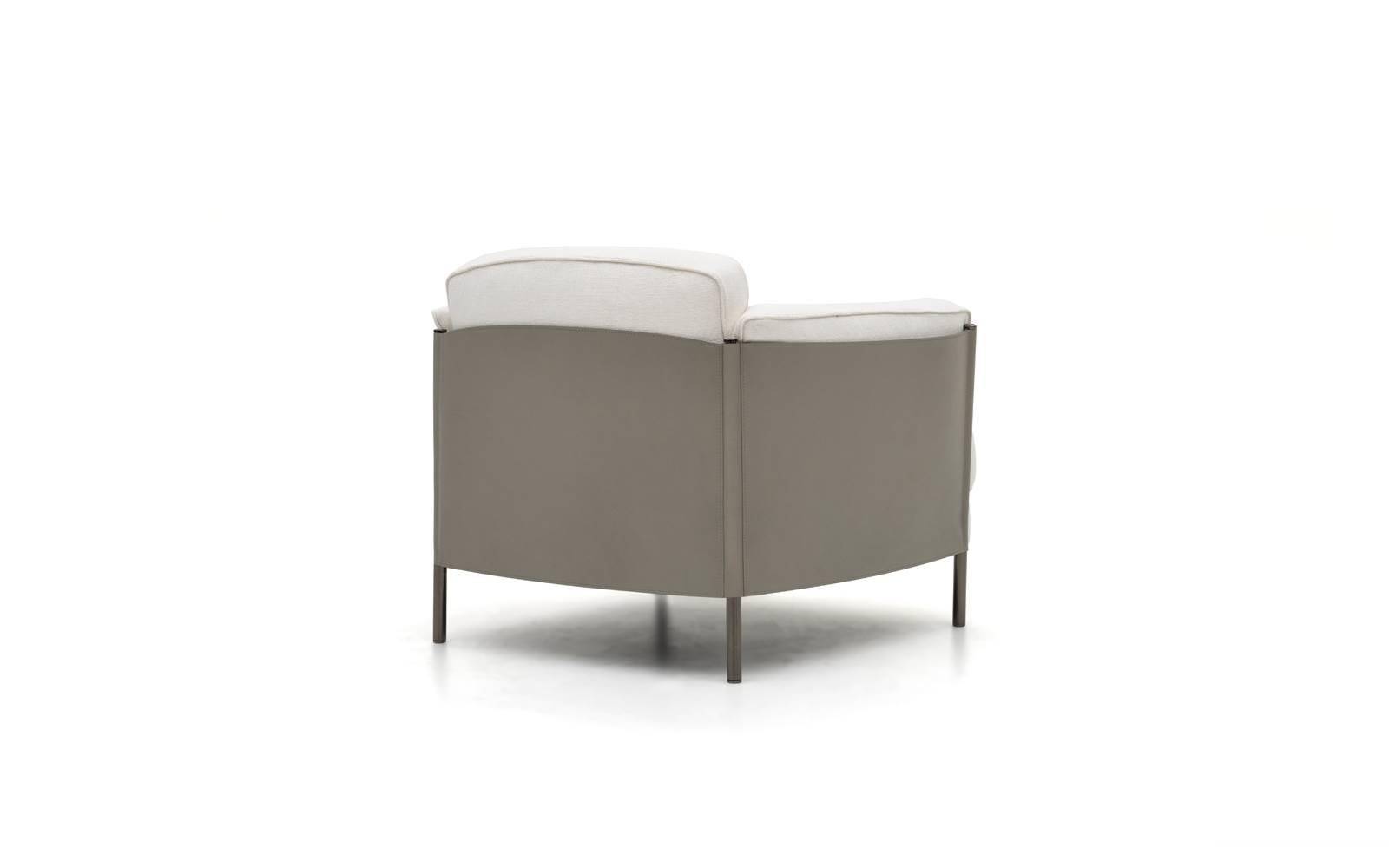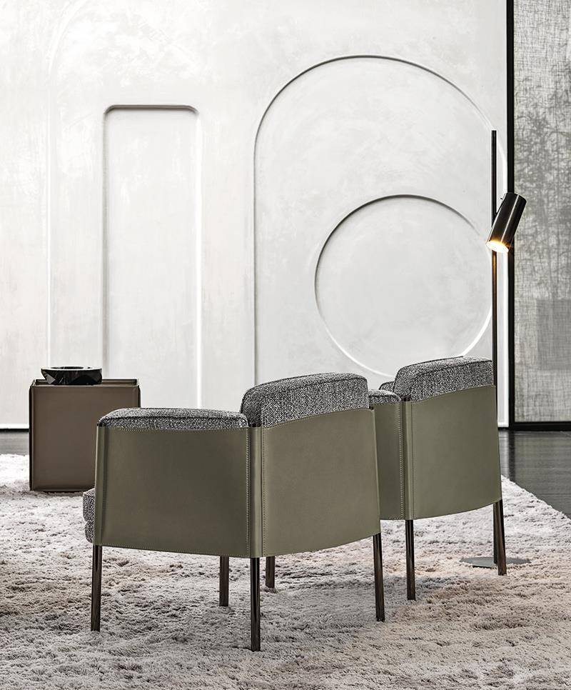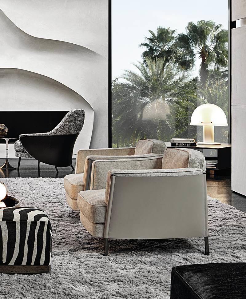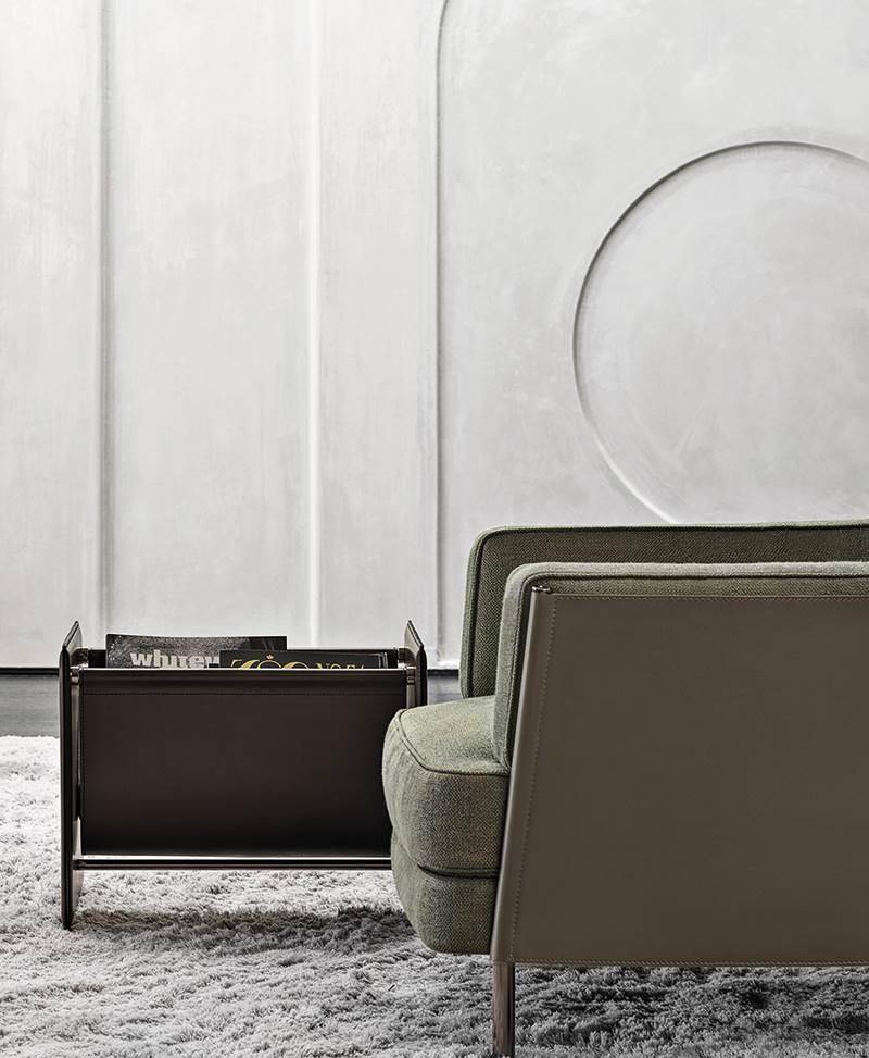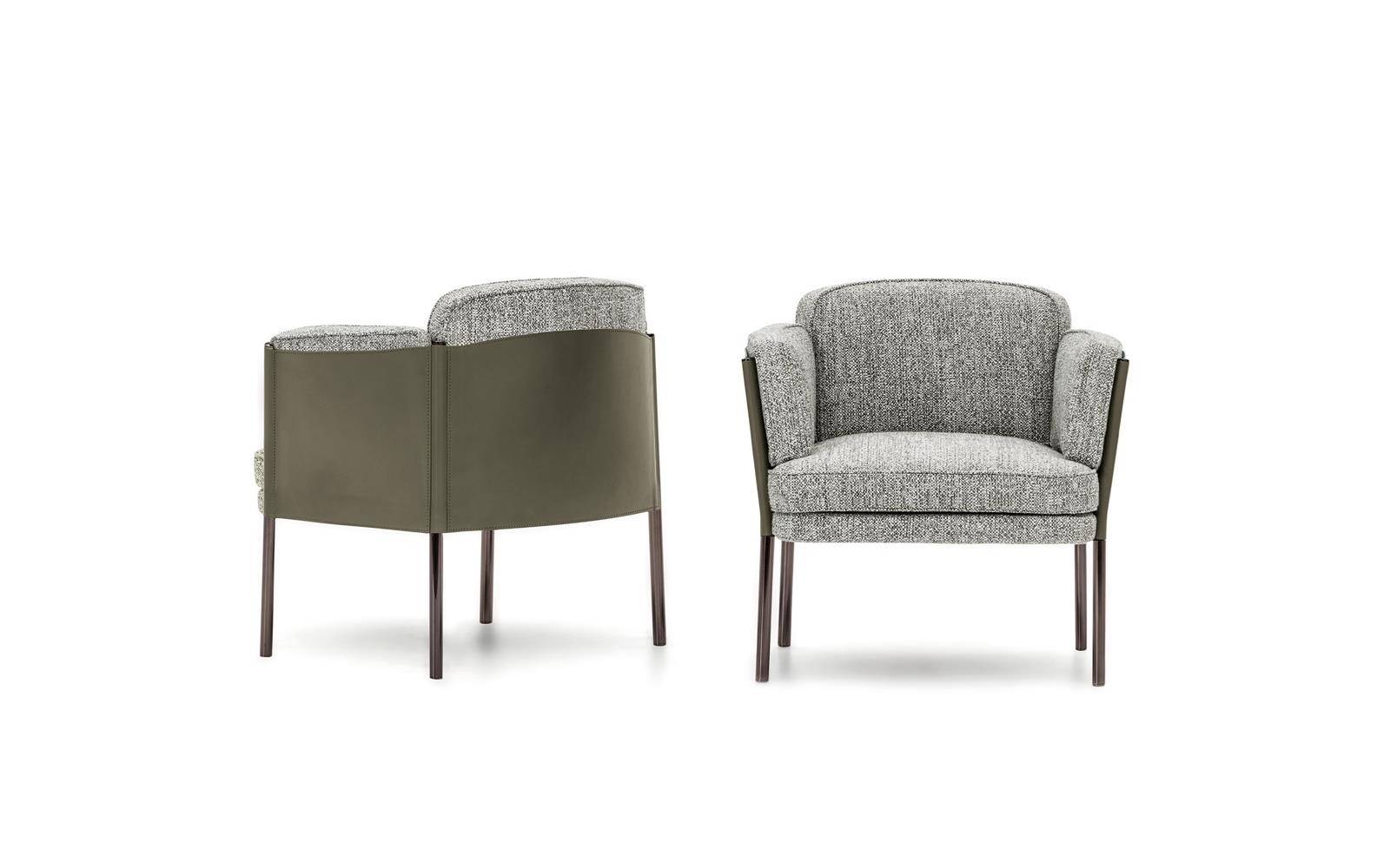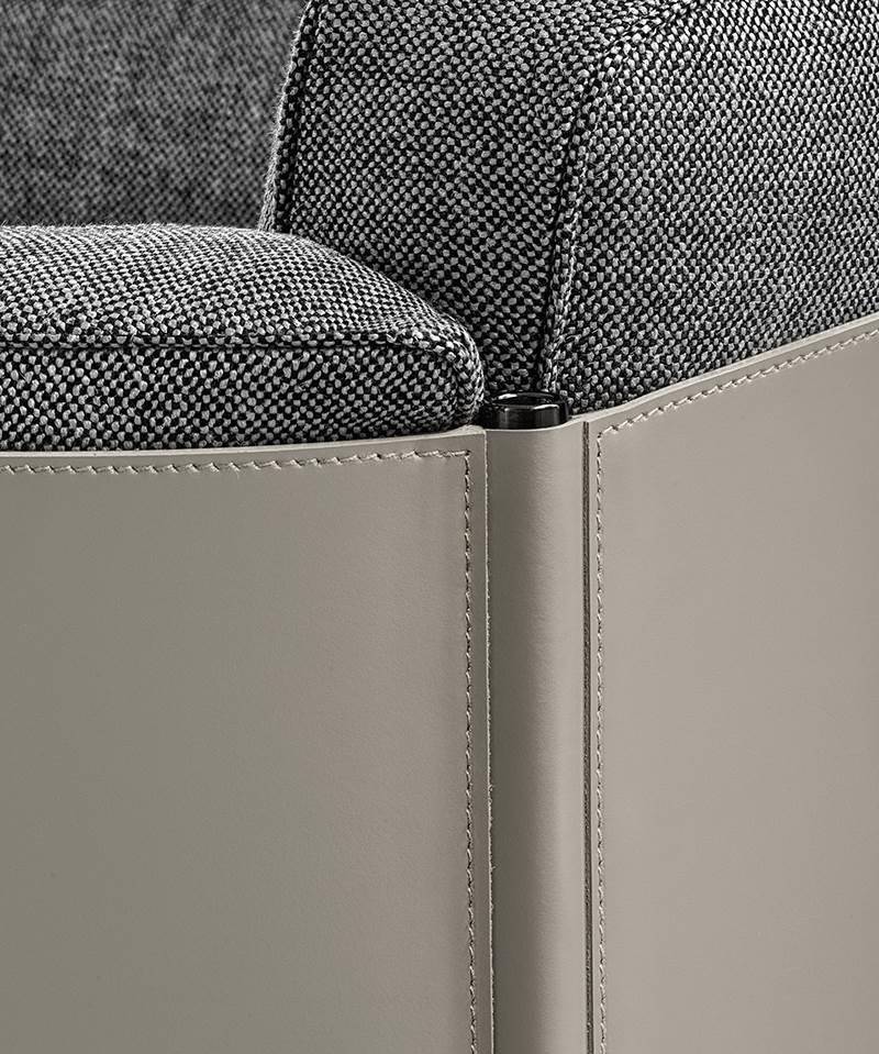 The compact design concept by GamFratesi, which plays on the harmonious contrasts between a structured external shell and a soft, inviting interior, enhanced by the texture of saddle hide and the fabrics used, has been flawlessly brought to life thanks to the design know-how and sophisticated tailoring techniques that have always been the distinguishing features of Minotti.
