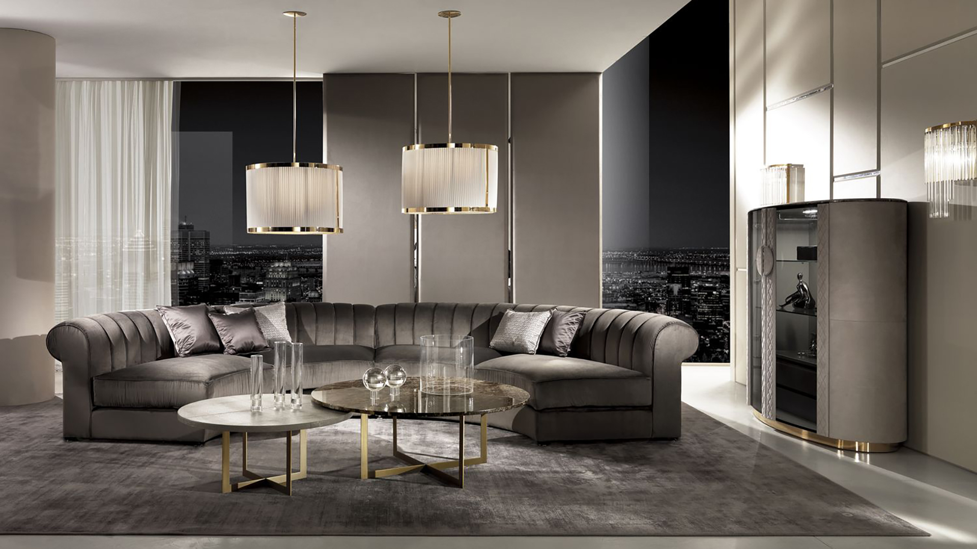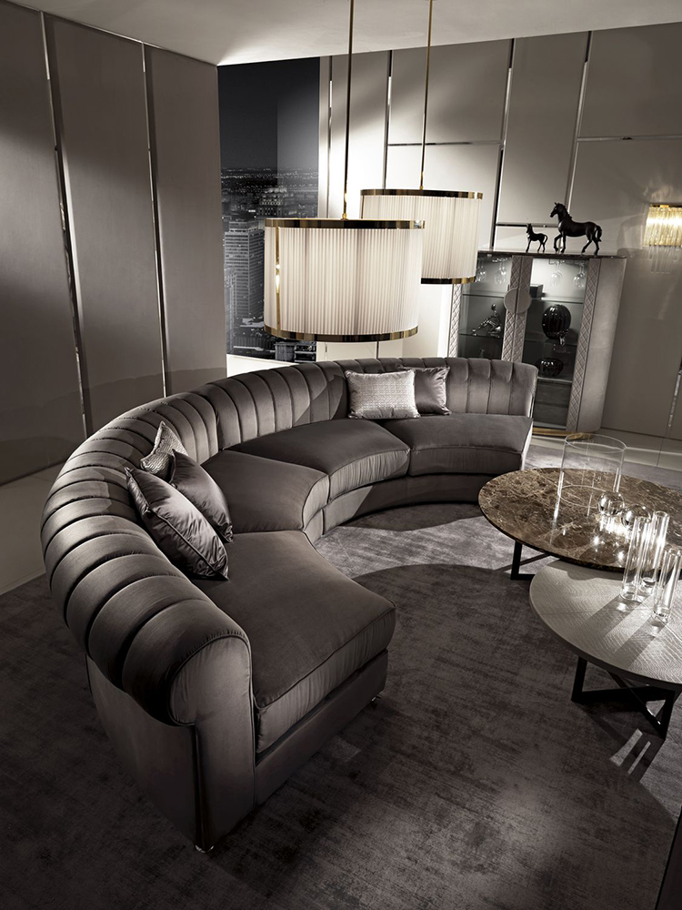 Կիսաշրջանաձև բազմոց՝ քրոմապատ հիմքի վրա։ Կարկասը բաղկացած է փայտից և պոլիուրեթանից։ Նստատեղերի և մեջքի բարձիկները լցված են սագի բմբուլով։ Առկա են պաստառների տարբեր լուծումներ: