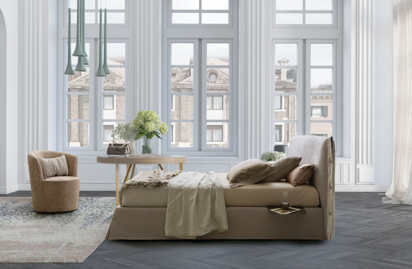 Հեգնանքն ու էլեգանտությունը Giselle-ն դարձնում են ամուր անհատականությամբ, ոճի պատկերակ ունեցող մահճակալ-կոնտեյներ: Ոչ միայն գործվածքի ծածկույթ իր հիմքի համար, այլ նրբագեղ կիսաշրջազգեստ՝ կողային բացվածքներով; ոչ թե սովորական փափուկ գլխակալ, այլ աստառով հսկայական բարձ, որի կողային կոճակները չեն կարող չնմանվել էլեգանտ վերարկուներին բնորոշ նրբագեղ ամրացումներին։