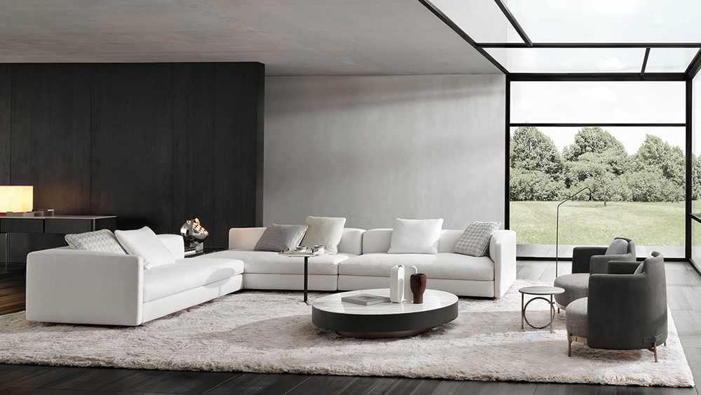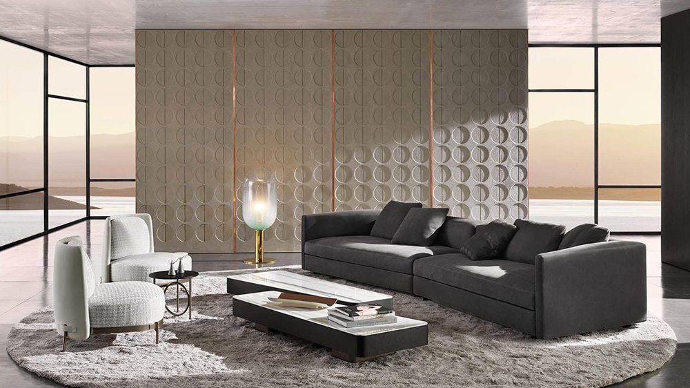 Granville մոդուլային բազմոցը Minotti-ի շարունակական հետազոտության արդյունքն է: Դասական տեխնիկան առանձնանում է հարմարավետ բռնակներով և հենակով։ Բազմոցի հիմքը փայտից է, նստատեղը և բարձիկները լցված են պոլիուրեթանային հիշողության փրփուրով։ Բազմոցը պատված է Minotti հավաքածուի գործվածքով (Roppongi 10 Pomice): Լրացվում է երկու կաշվե բարձիկներով (Pelle Lodge Col 02 Visone):