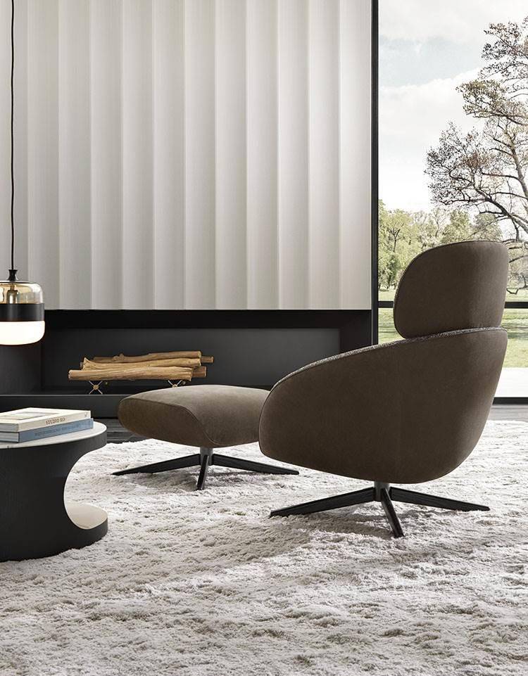 Բազկաթոռ Russell օսմանյանի հետ մոդերն ոճով, 360 աստիճան պտտվող: Պաստառագործությունը կարելի է ընտրել Minotti հավաքածուից։ Աթոռի հիմքը կարելի է տեղադրել մետաղյա հարթակի վրա՝ բրոնզագույն մետաղից՝ մոկա կաղնու ոտքերով, ինչը թույլ է տալիս աթոռին պտտվել 360 աստիճանով։