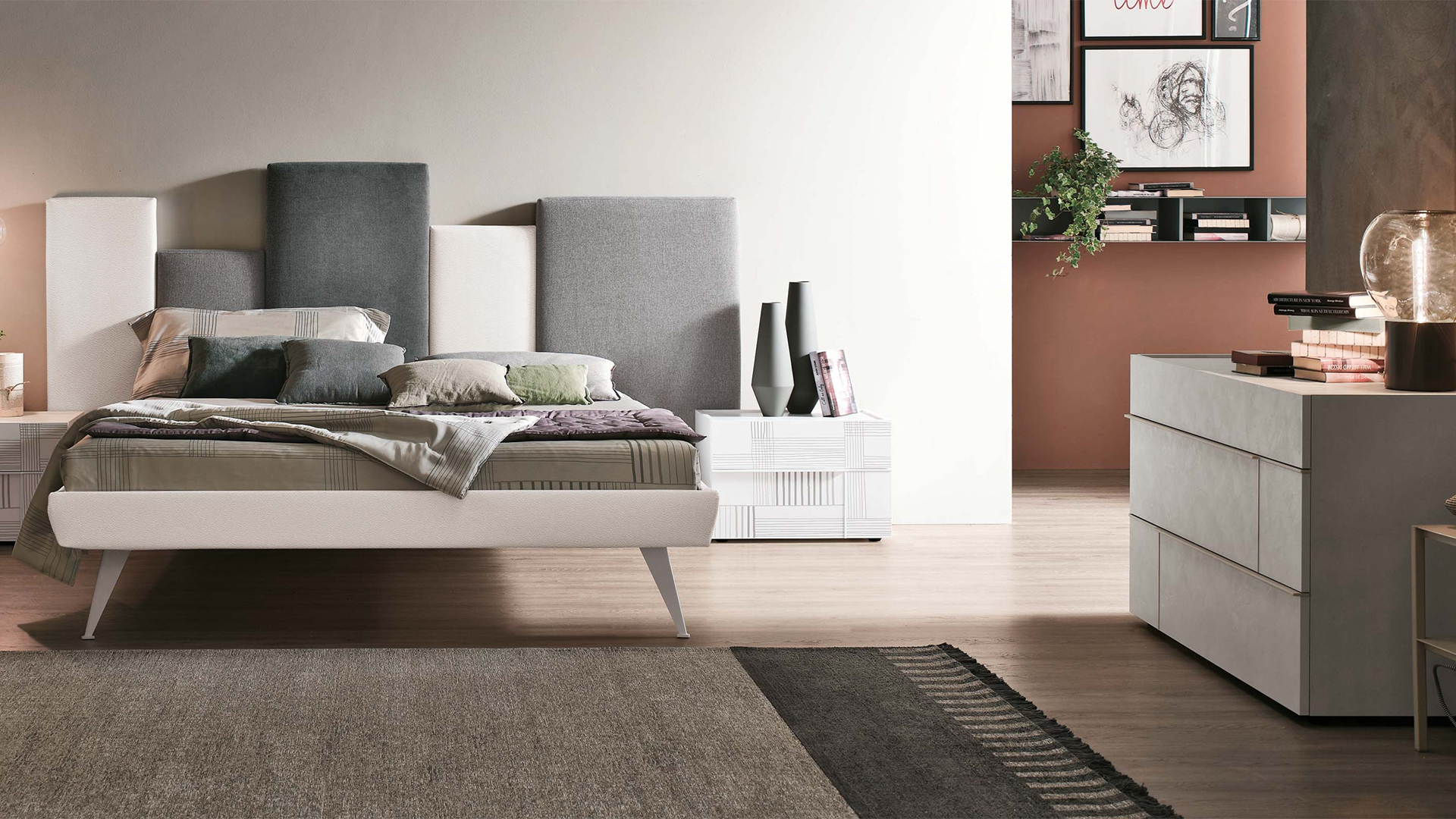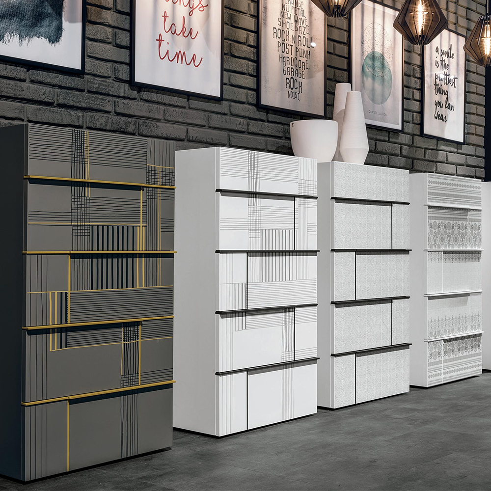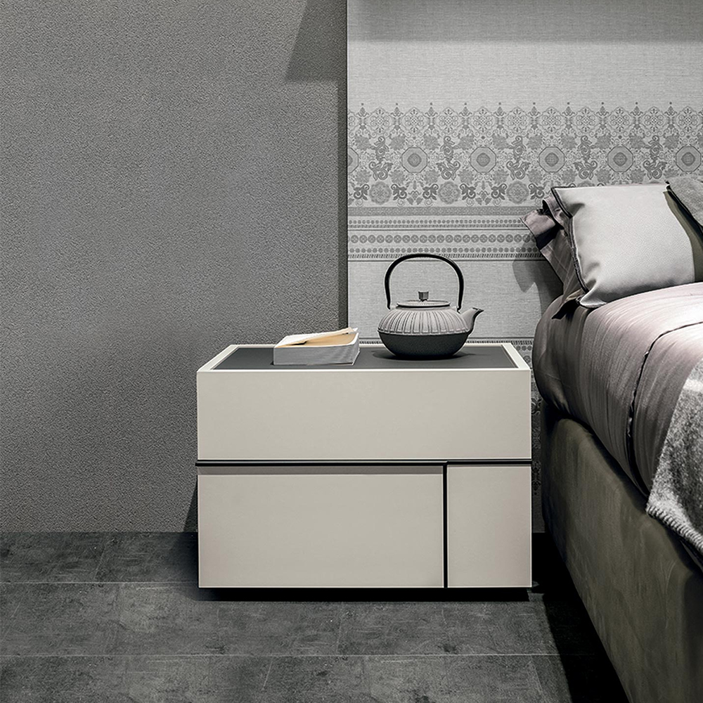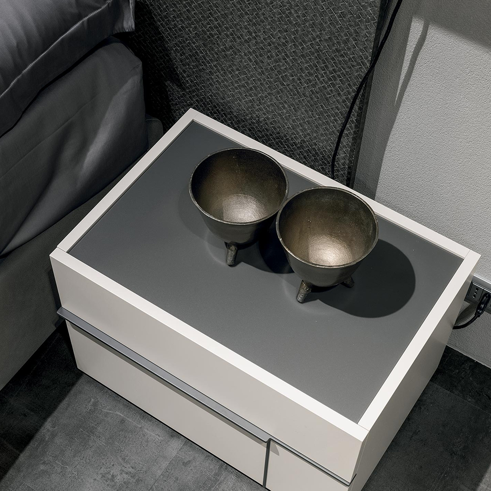 Hashtag կոնտեյներները ներկայացված են հյուսված նյութից <<madreperla>> matt-pearl գույնով,  <<antracite 160>> փայլատ ապակյա վերնամասով և  փայլատ մետաղական բռնակով: